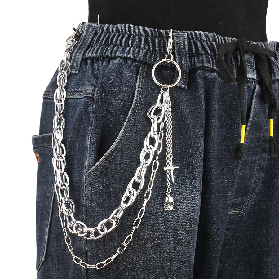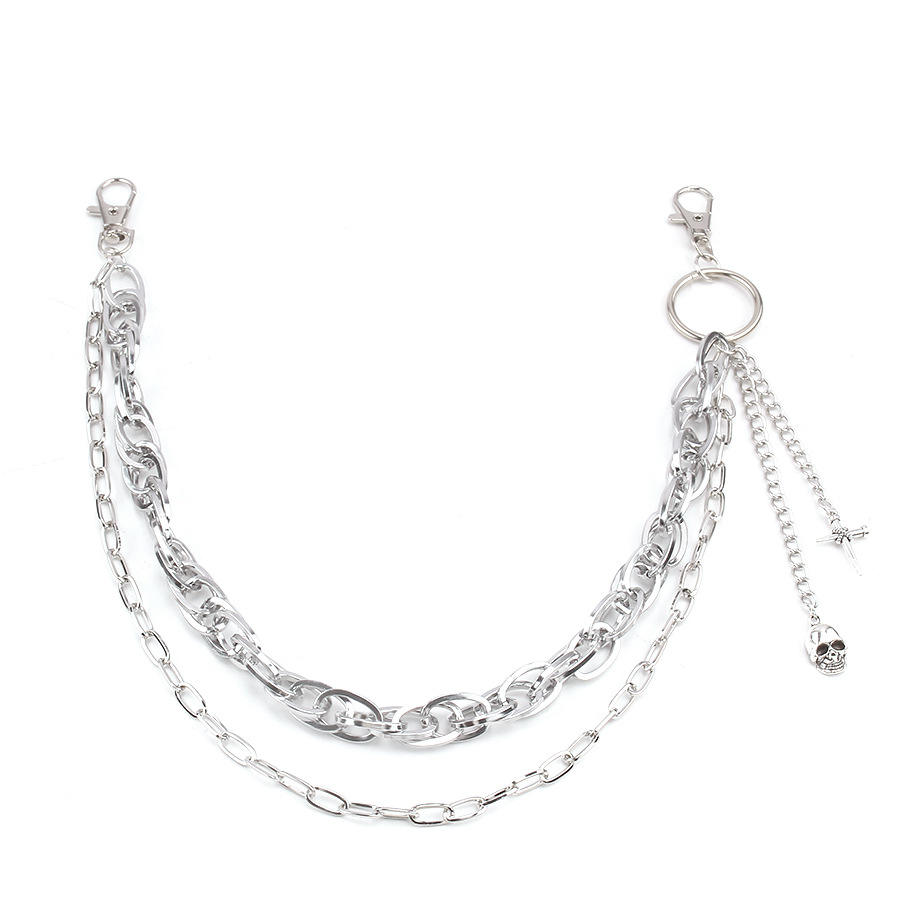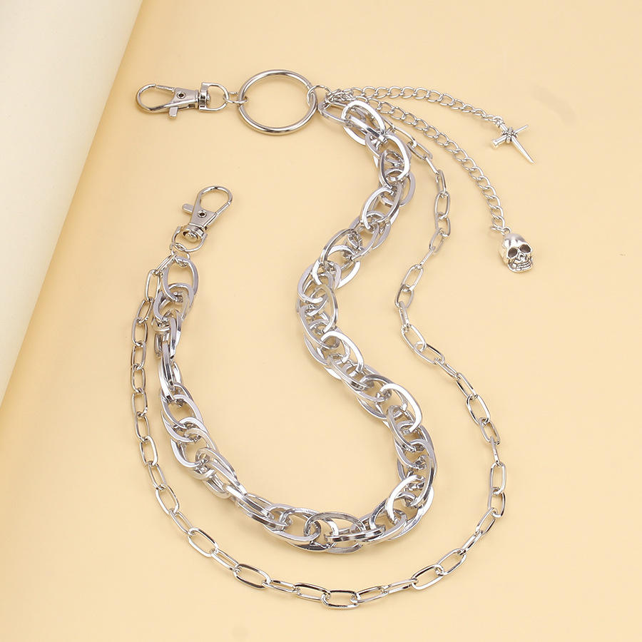 จี้โลหะรูปหัวกะโหลกสองชั้นแบบเรขาคณิต สายคล้องกางเกง โลหะผสมสังกะสี สไตล์ฮิปฮอป พังก์ สายคาดเอว แฟชั่นลำลอง สายคล้องตัว