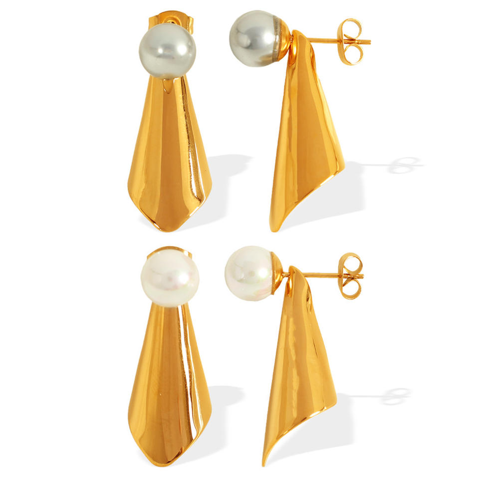 ต่างหูทรงเรขาคณิตประดับมุกเคลือบทองสำหรับสวมใส่ทุกวัน เครื่องประดับผู้หญิง EH555