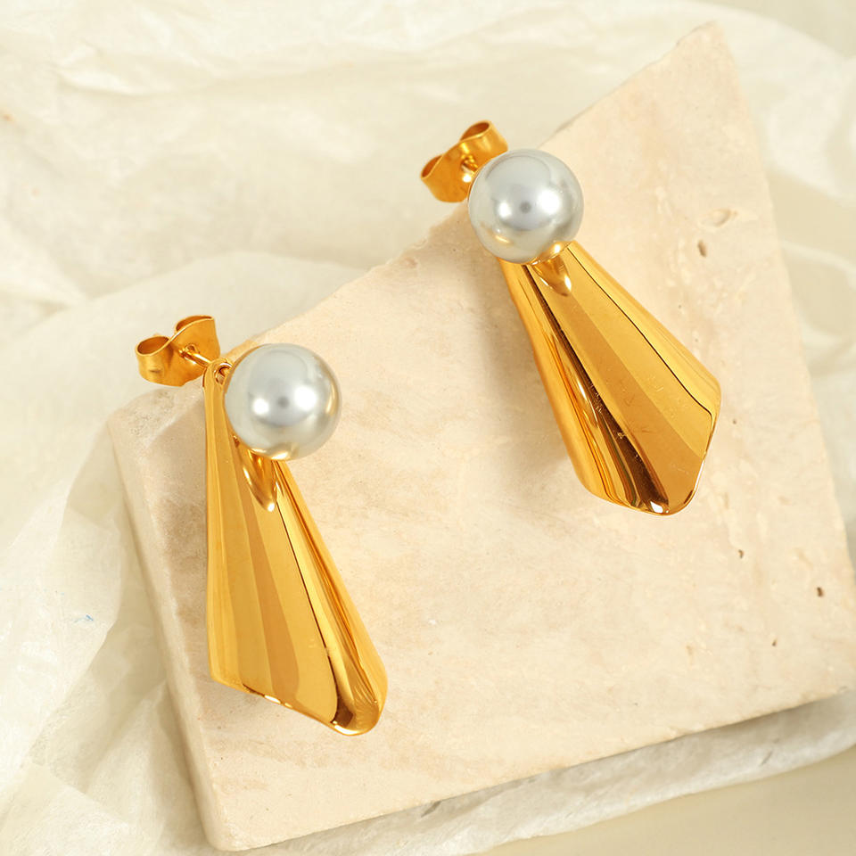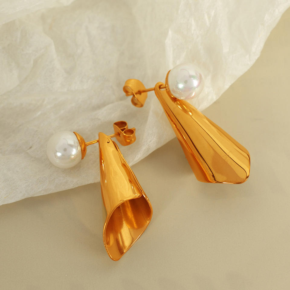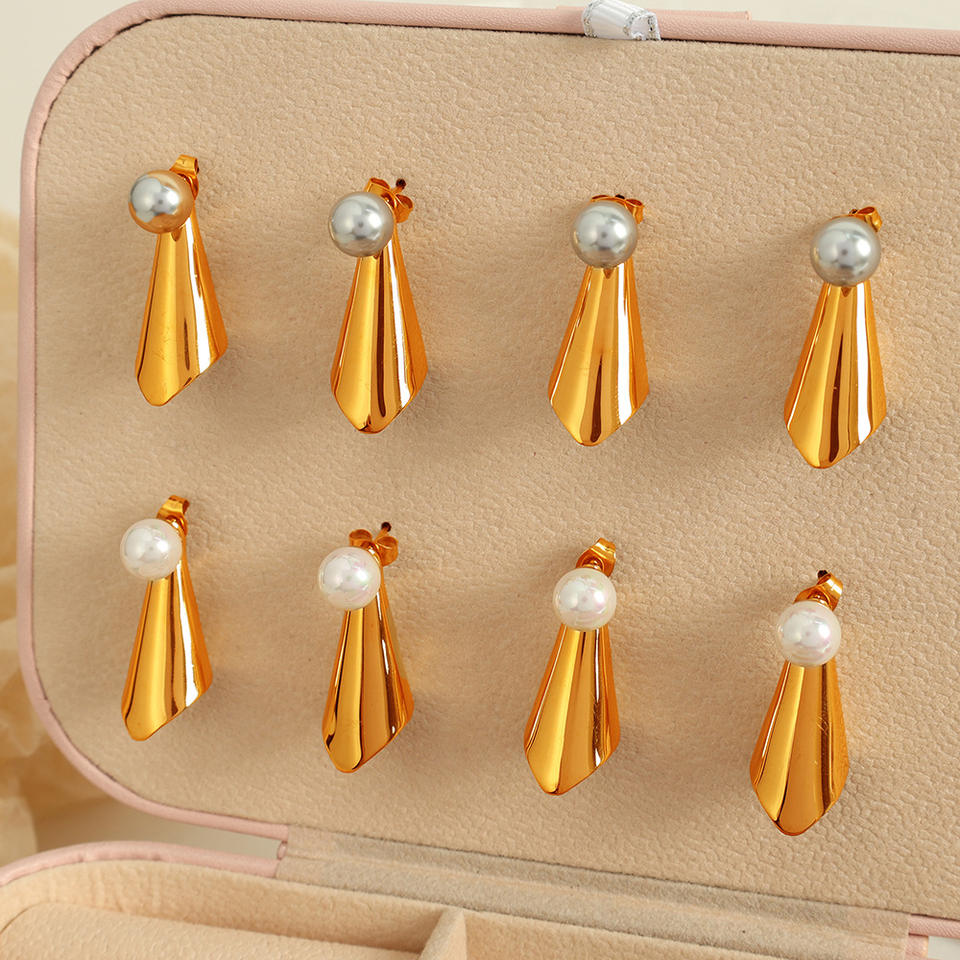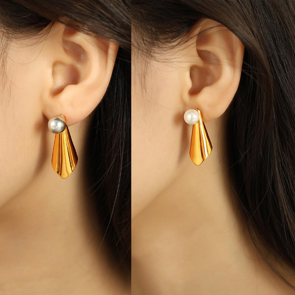 color:EH555 White Pearl Gold Earrings EH555 Grey Pearl Gold Earrings