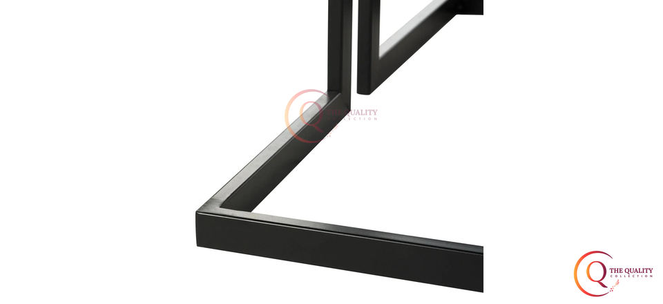 โต๊ะกาแฟรูปทรงเรขาคณิตรูปทรงสี่เหลี่ยมเรียบง่ายทันสมัยพร้อมพื้นไม้ที่เพรียวบางและฐานโลหะหนา