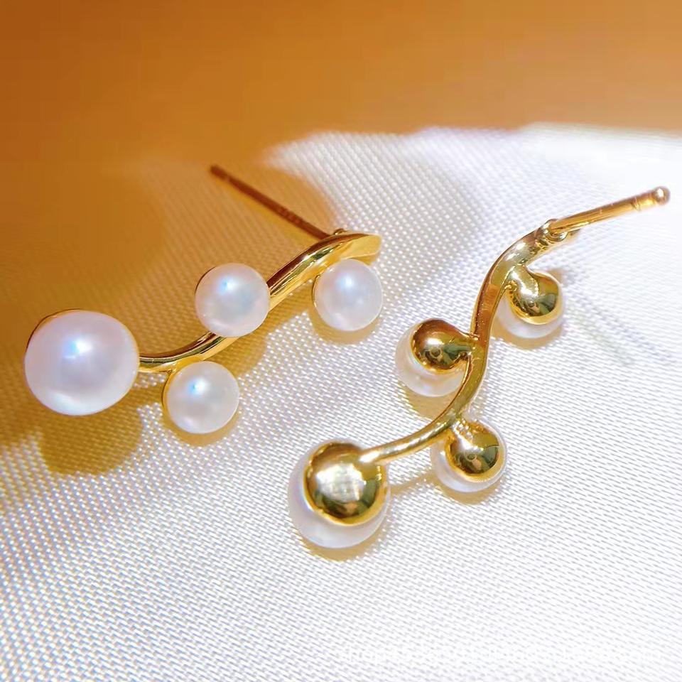 ต่างหูมุกน้ำจืดทรงเรขาคณิต แนะนำขนาดไล่ระดับสี เครื่องประดับดีไซน์เฉพาะกลุ่ม