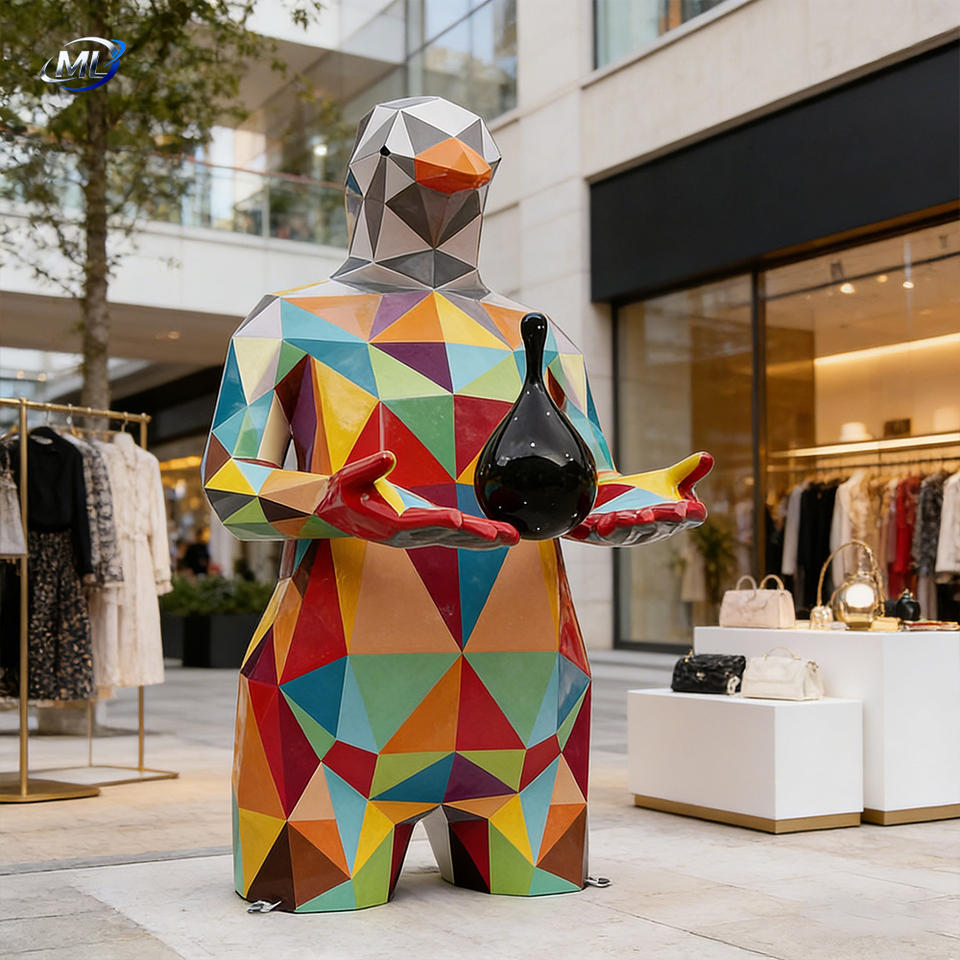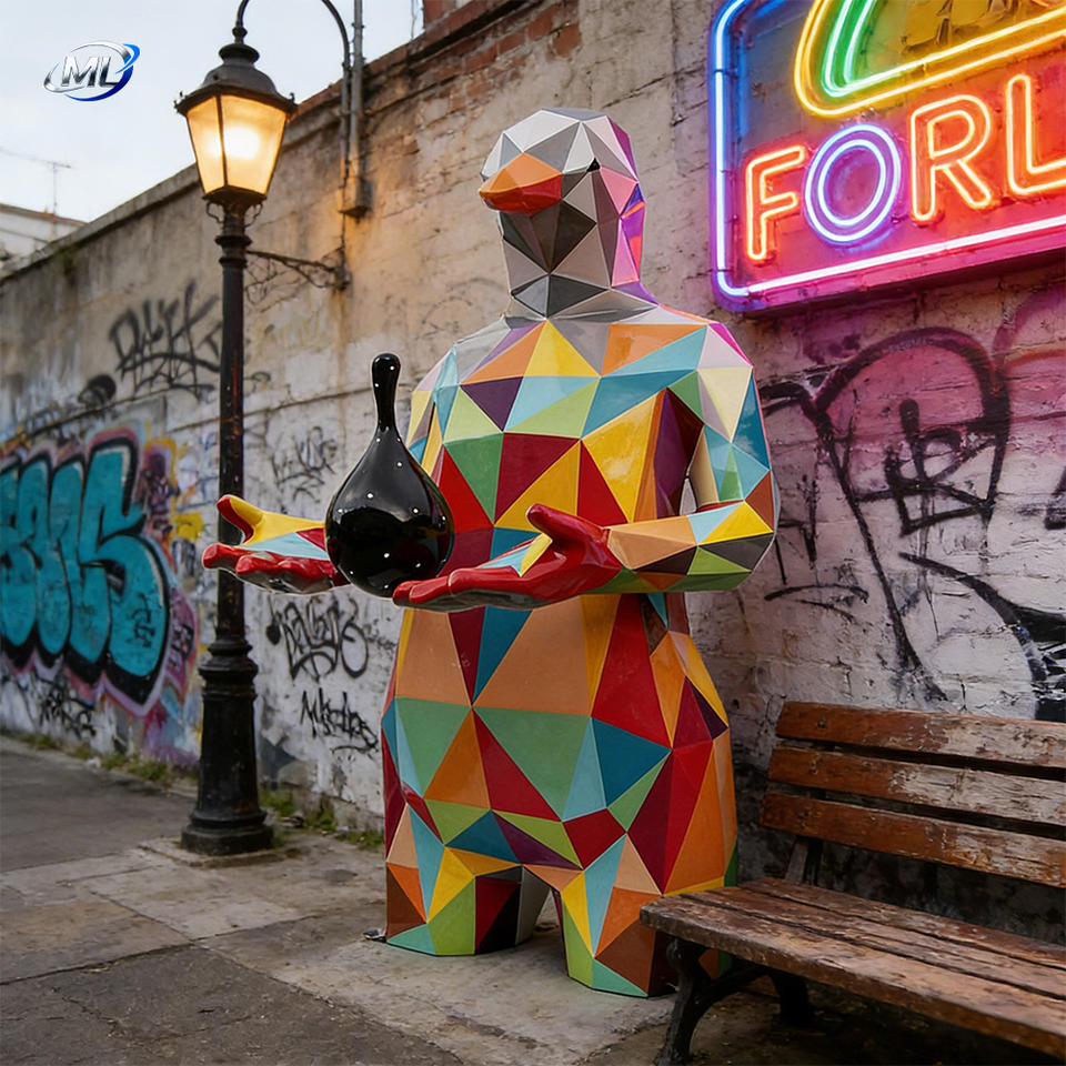 odern Geometric Facet Bird Man Fiberglass Statue Painted Art Decor