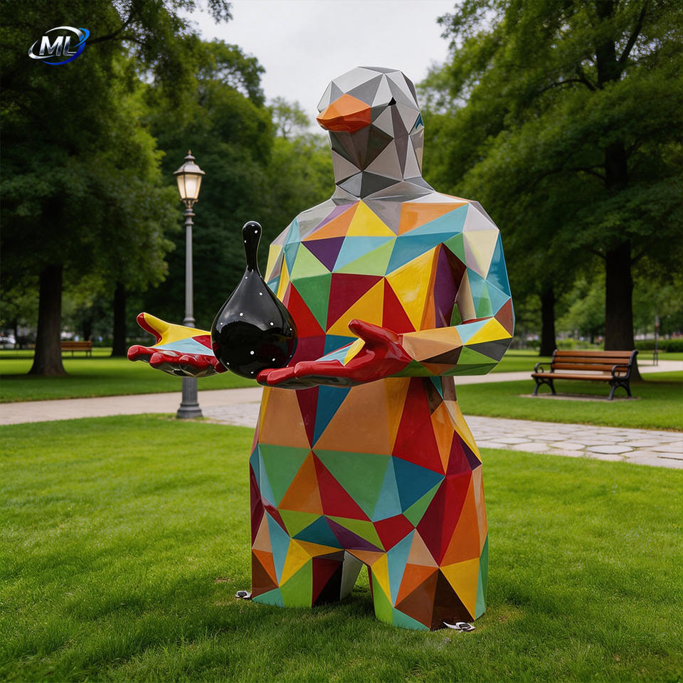 ประติมากรรมรูปนกชายทรงเรขาคณิตทาสี งานศิลปะสมัยใหม่ รูปปั้นนกชายขนาดใหญ่ ศิลปะเรขาคณิต ตกแต่งภูมิทัศน์