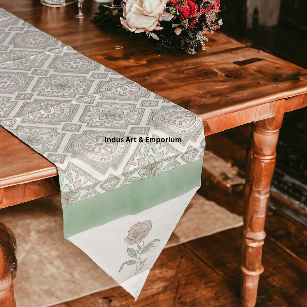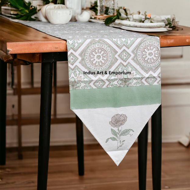 วิ่งโต๊ะผ้าฝ้ายพิมพ์ลายบล็อกมือเรขาคณิตนักวิ่งโต๊ะรับประทานอาหาร