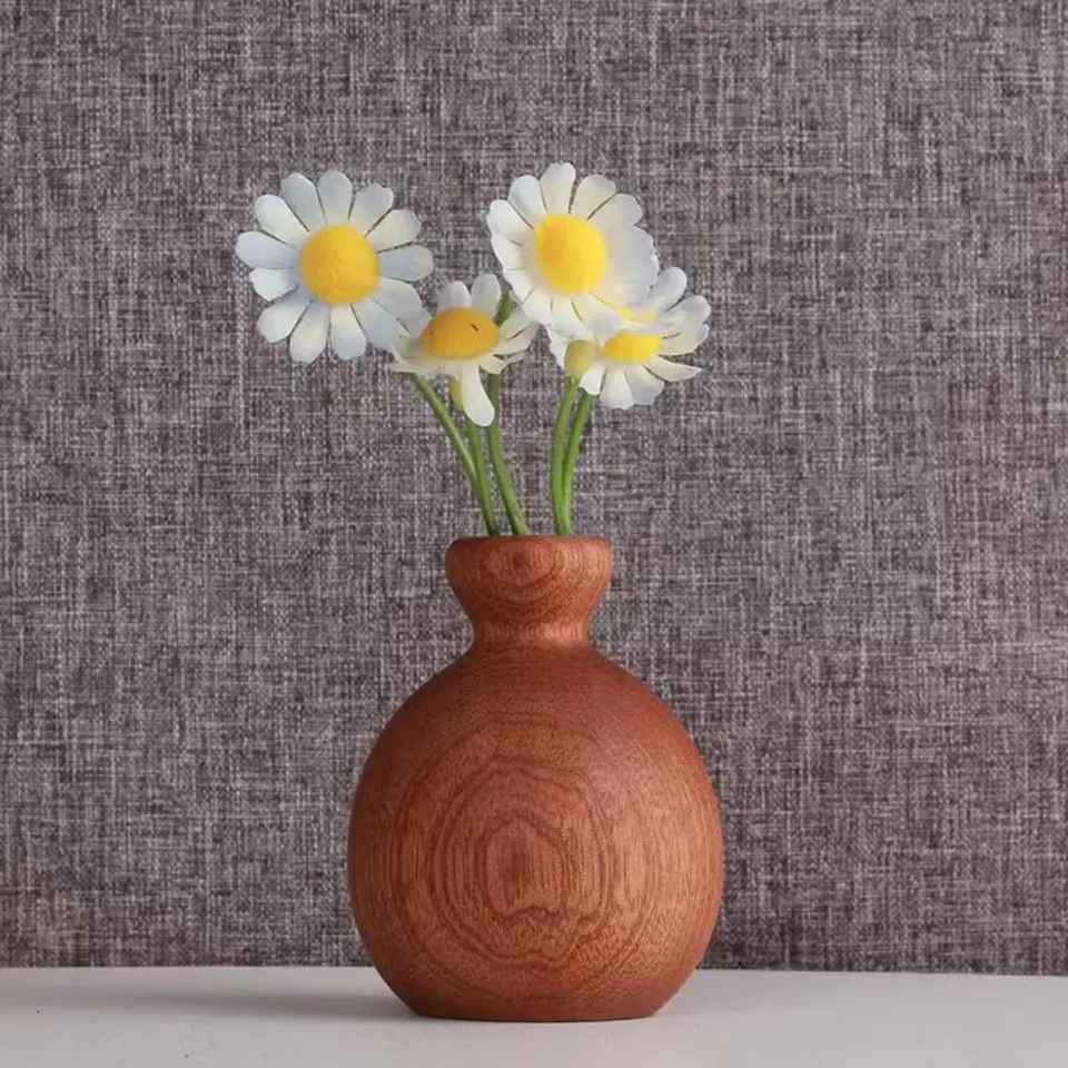 แจกันไม้รูปทรงเรขาคณิตหกเหลี่ยมทำจากไม้จริงด้วยมือกระถางดอกไม้สำหรับตกแต่งสมัยใหม่สำหรับสำนักงานร่วมสมัย