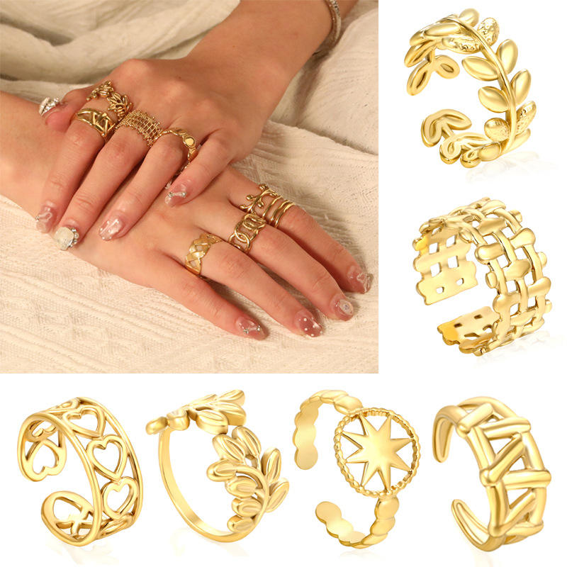 แหวนปรับขนาดได้ทรงเรขาคณิต ชุบทอง 18K ของขวัญเครื่องประดับแฟชั่นสำหรับทุกเพศ