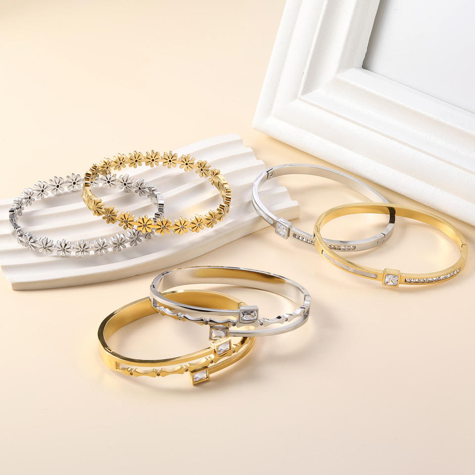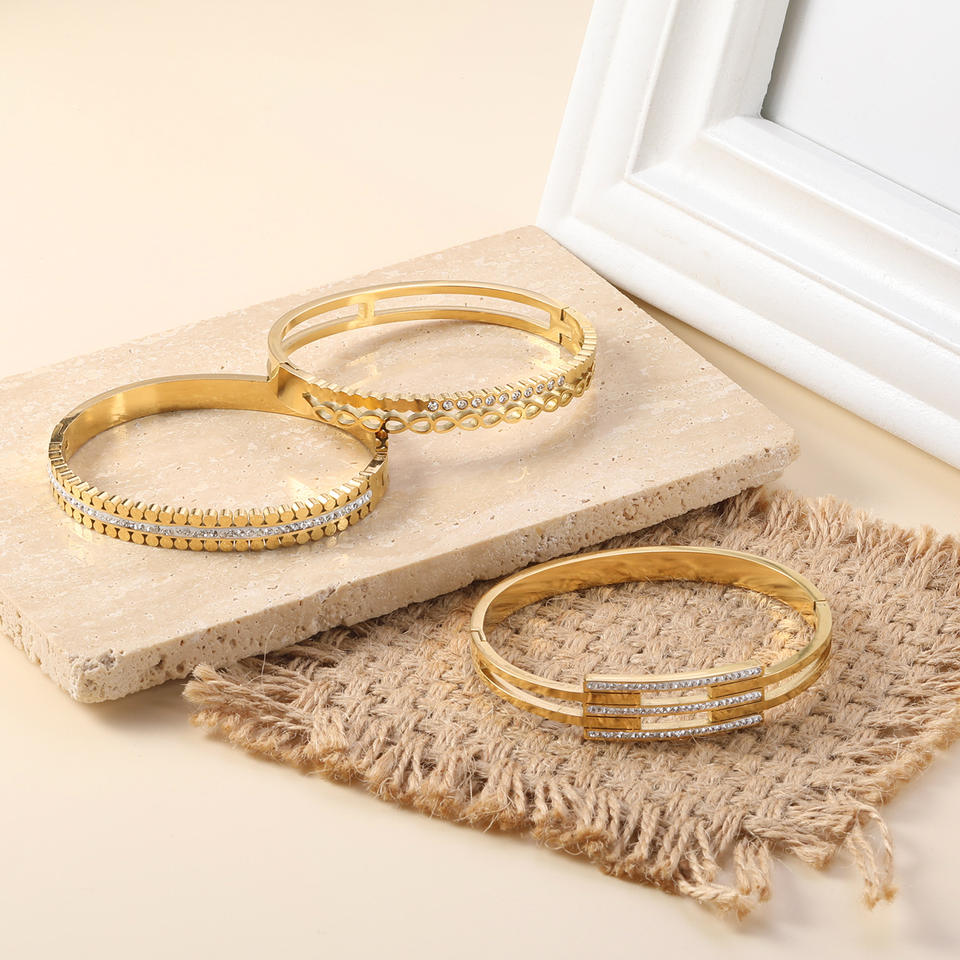 กำไลข้อมือทรงเรขาคณิตสีทองฝังคริสตัลเครื่องประดับแฟชั่นสำหรับผู้หญิง