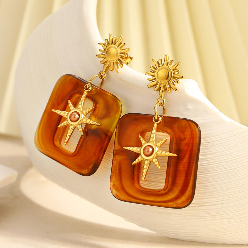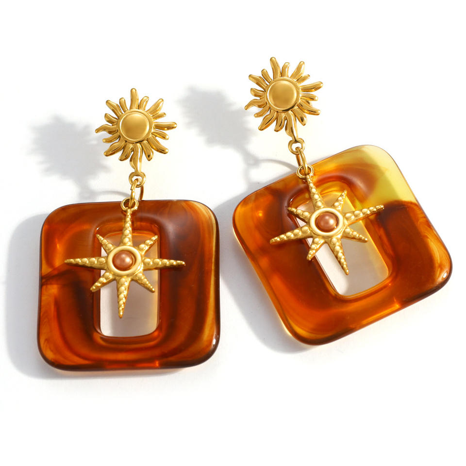 ต่างหูทรงเรขาคณิตรูปดาวแปดแฉกแบบกลวง ชุบทอง 18k ทำจากสแตนเลสสตีล ผลิตที่เมืองอี้หวู่ รุ่น EH12226