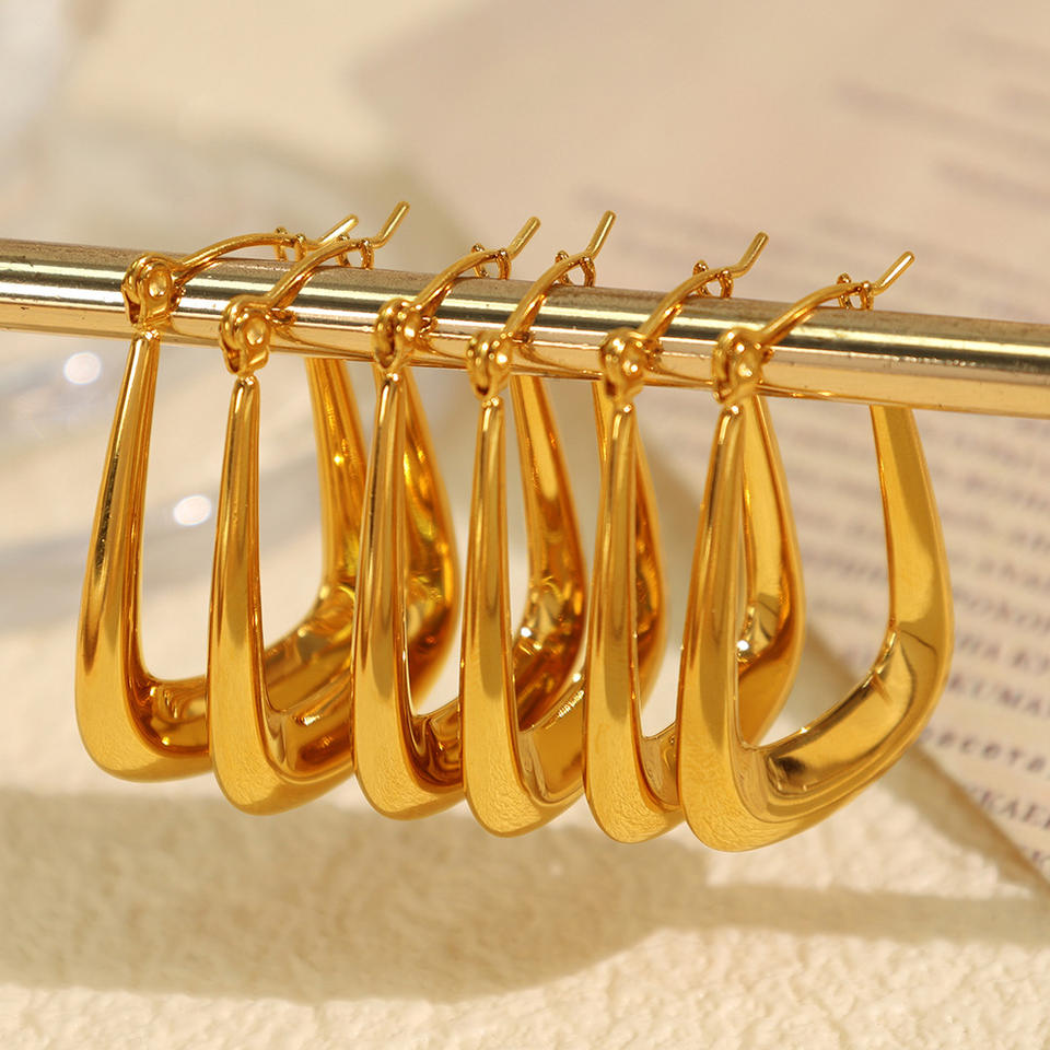 ต่างหูห่วงทรงเรขาคณิตทองไทเทเนียมเหล็กมินิมอลลิสต์แฟชั่นเครื่องประดับสำหรับผู้หญิง EH846