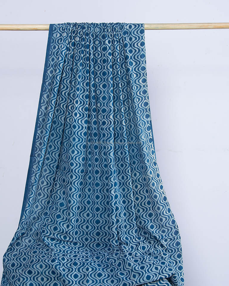 ผ้าฝ้ายลายบล็อกสีครามทรงเรขาคณิตผ้าคอตตอนคอมบ์ออร์แกนิกสำหรับเด็กผู้หญิง120gsm เป็นมิตรกับสิ่งแวดล้อมสิ่งทอใช้ในบ้าน