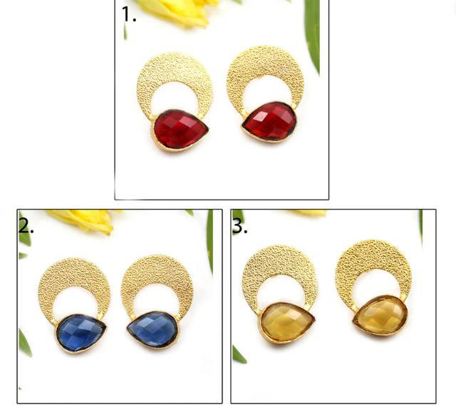 เครื่องประดับรูปทรงเรขาคณิตรูปลูกแพร์สีแดงโกเมนควอทซ์พื้นผิวโลหะสำเร็จต่างหูทองเหลือง18K ชุบทองสำหรับสาวๆใส่ต่างหู