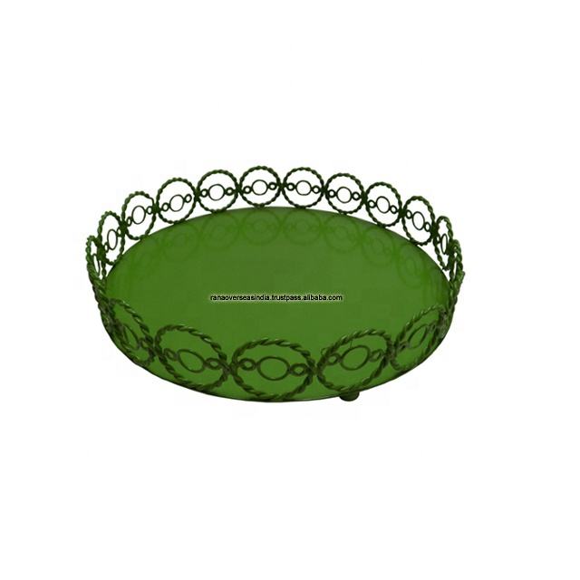 ถาดเสิร์ฟลวดโลหะรูปทรงเรขาคณิตที่มีรูปทรงกลมสีเขียวสำหรับร้านอาหารและโรงแรม