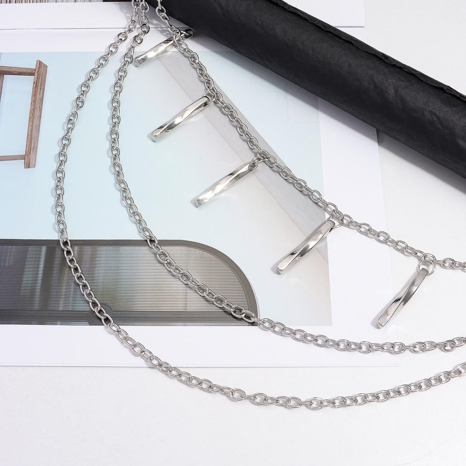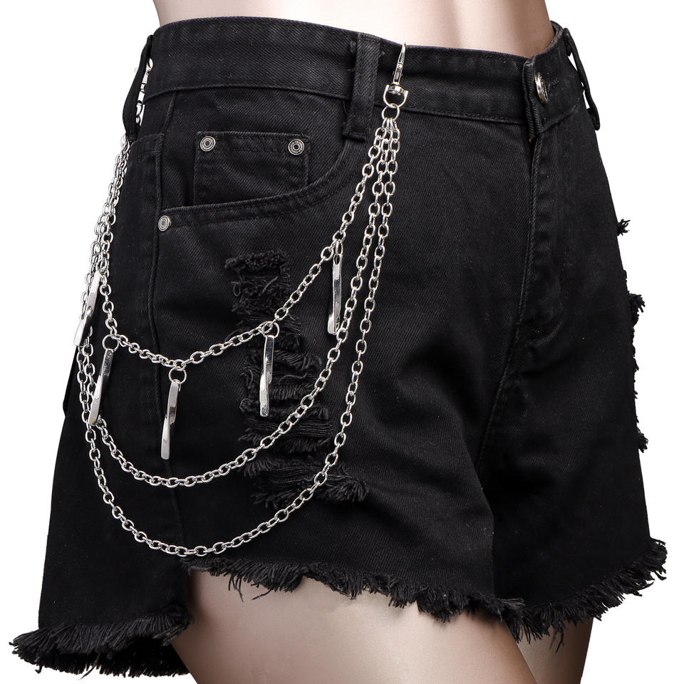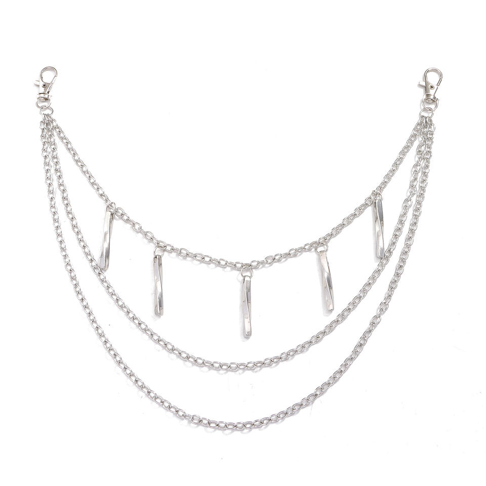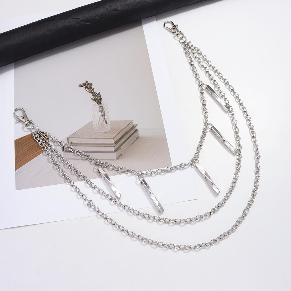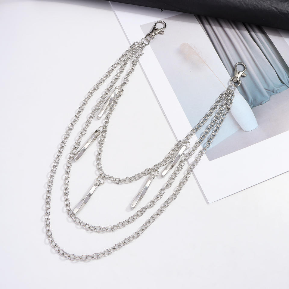 โซ่โลหะหลายชั้นทรงเรขาคณิต โซ่คาดเอว แฟชั่นฮิปฮอป โซ่คล้องกางเกงลำลอง โลหะผสมสังกะสี สีขาว K