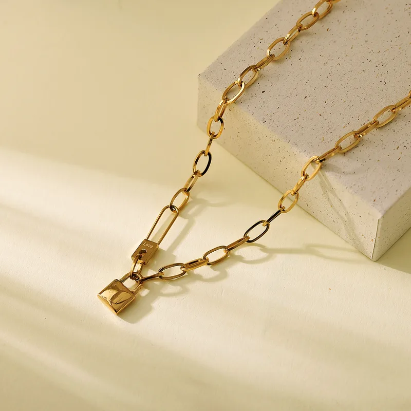 สร้อยคอทรงเรขาคณิตสำหรับผู้หญิง ทำจากสแตนเลส 304 พร้อมสายเคเบิลชุบทองคำแท้ 18K