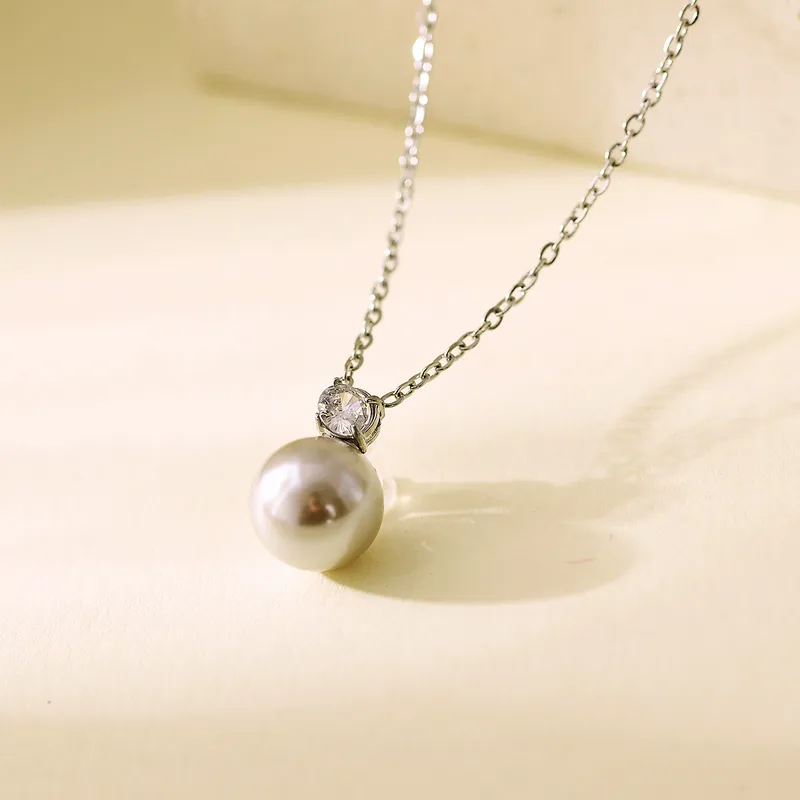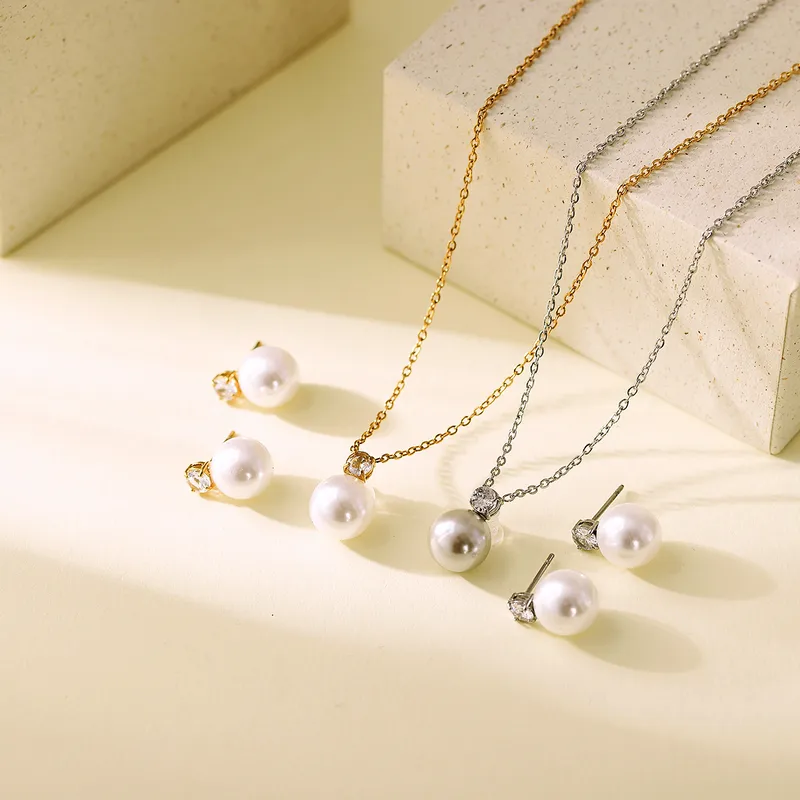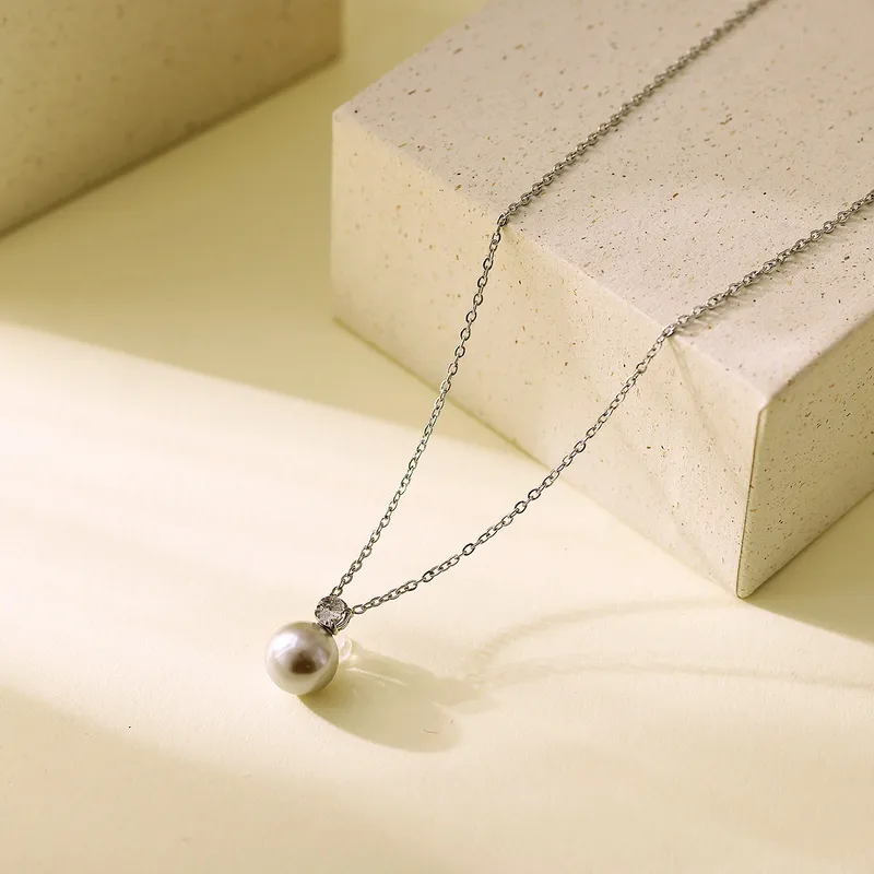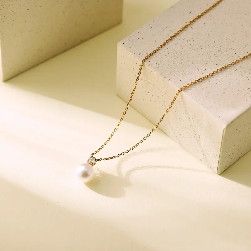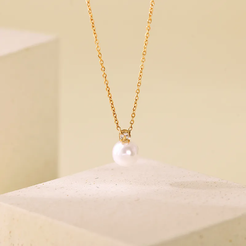 สร้อยคอรูปทรงเรขาคณิตสำหรับผู้หญิง ทำจากสแตนเลส 304 ชุบทองคำแท้ 18K ประดับมุก