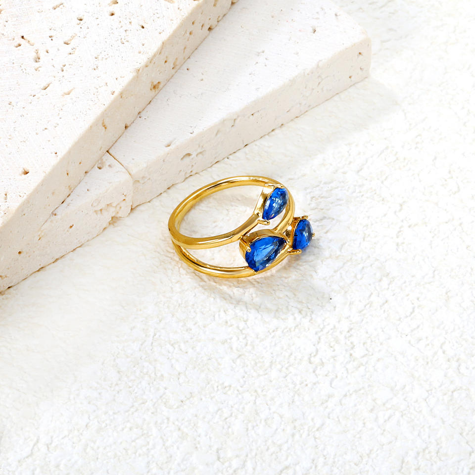 แหวนเปิดรูปทรงเรขาคณิตประดับด้วยหินเพทายอะความารีน 3 เม็ด จัดวางแบบหนามเตย เครื่องประดับแฟชั่นสำหรับผู้หญิง ขนาด 6 7 8 ปรับได้