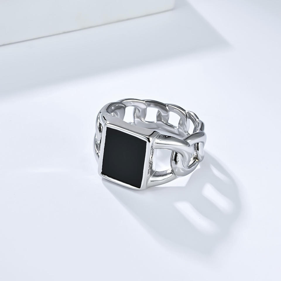 แหวนโซ่คิวบาแบบเรขาคณิตฉลุลายฝังไทเกอร์อายสำหรับผู้ชาย ของขวัญเครื่องประดับไทเทเนียมสตีล