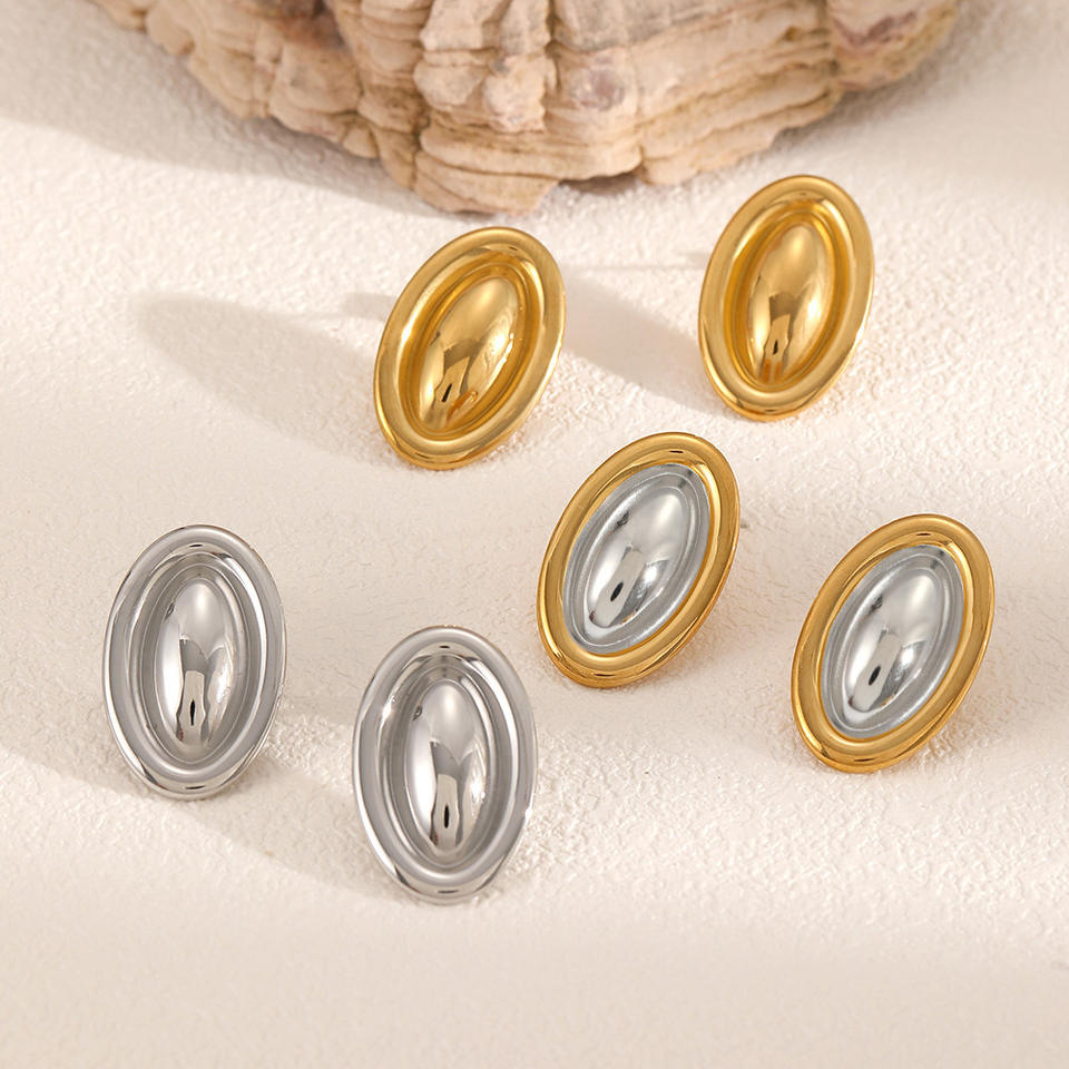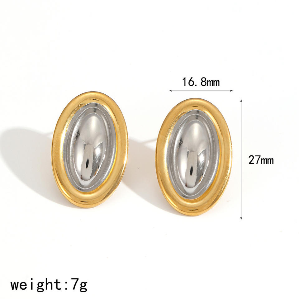 ต่างหูหมุดสแตนเลสรูปวงรีทรงเรขาคณิตเหล็กไทเทเนียมชุบทองสำหรับผู้หญิงเครื่องประดับแฟชั่น TE60404