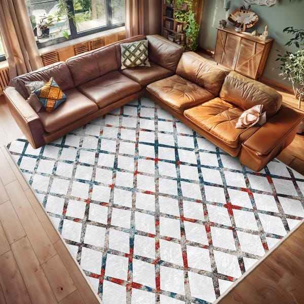 พรมปูพื้นลายเรขาคณิต พรมขนสัตว์ทอมือสไตล์โมเดิร์น, พรมห้องนั่งเล่น โฮมเซ็นเตอร์
