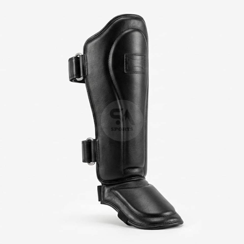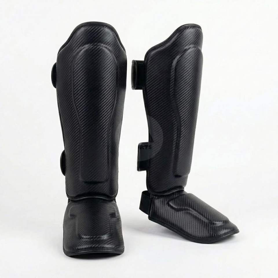 สนับแข้งหนัง/PU ลายเรขาคณิต 3 ชั้น สีดำขาว สำหรับมวยไทย MMA อุปกรณ์ฝึกซ้อม ทนทานต่อแรงกระแทกสูง