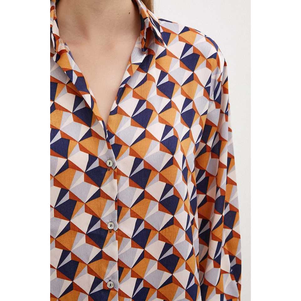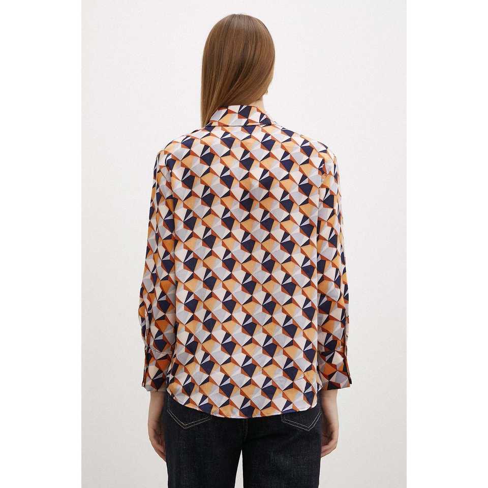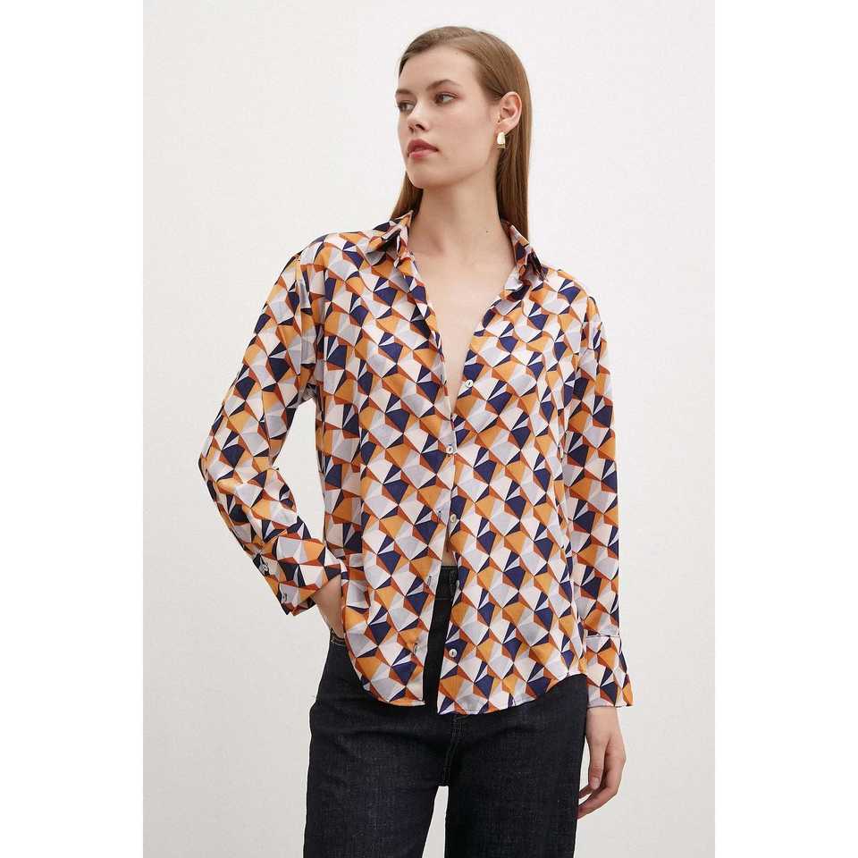 เสื้อเชิ้ตผ้าซาตินลายเรขาคณิตสำหรับผู้หญิง ติดกระดุม สวมใส่สบายๆ ทุกวัน สีพาสเทล