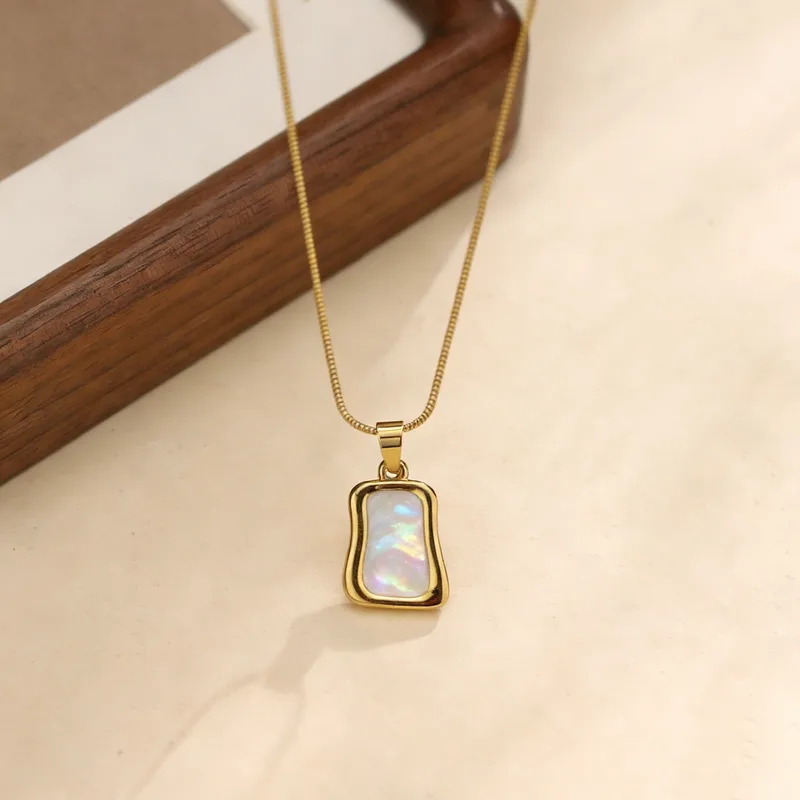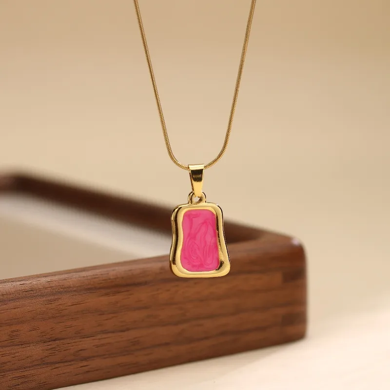 สร้อยคอจี้รูปทรงเรขาคณิตสำหรับผู้หญิง ชุบทอง 18K ด้วยวิธีเคลือบไฟฟ้า พร้อมสายสร้อยแบบงู กันน้ำ ไม่หมอง