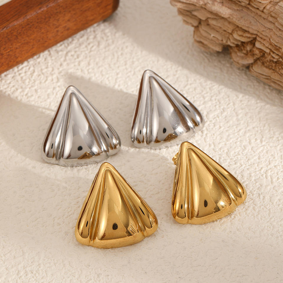 ต่างหูสแตนเลสทรงสามเหลี่ยมจีบแบบเรขาคณิตสำหรับผู้หญิง เครื่องประดับแฟชั่นไทเทเนียมคุณภาพสูง
