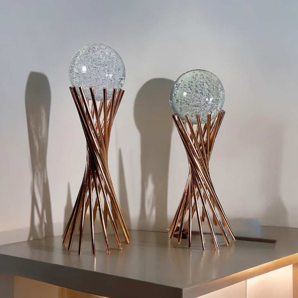 แกนกลางโลหะทรงกลมเรขาคณิตศิลปะหรูหราทันสมัยสำหรับตกแต่งบ้านพร้อมลูกบอลแก้วที่สง่างาม