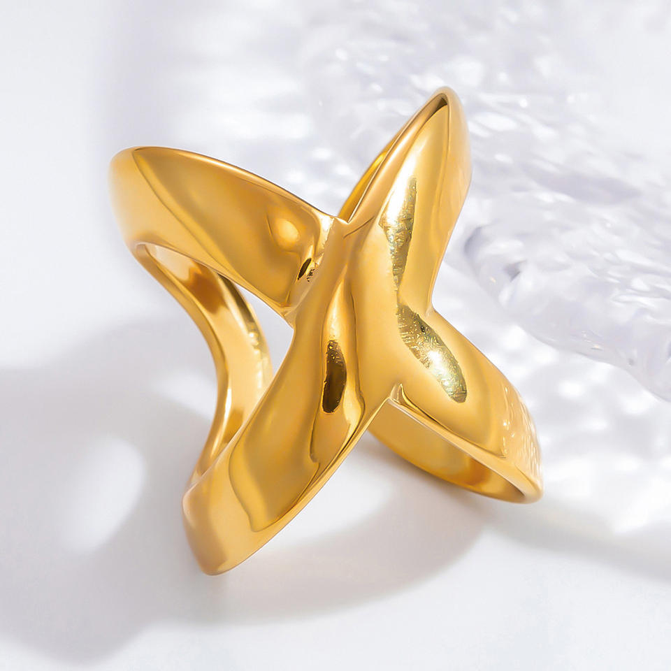 แหวนสเตนเลสสตีลทรงเรขาคณิตแบบเปิดสำหรับผู้หญิง เครื่องประดับสำหรับงานปาร์ตี้ แหวนแฟชั่นหรูหราสีทอง รุ่น JZ21333