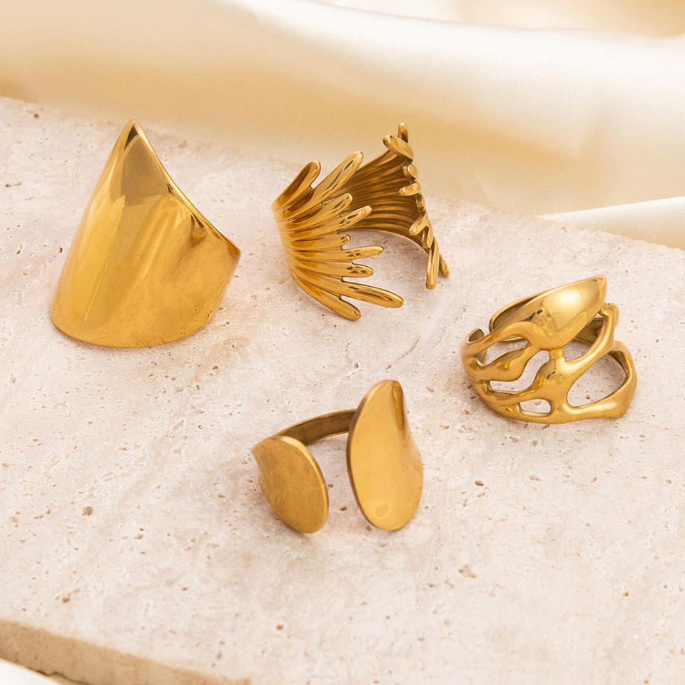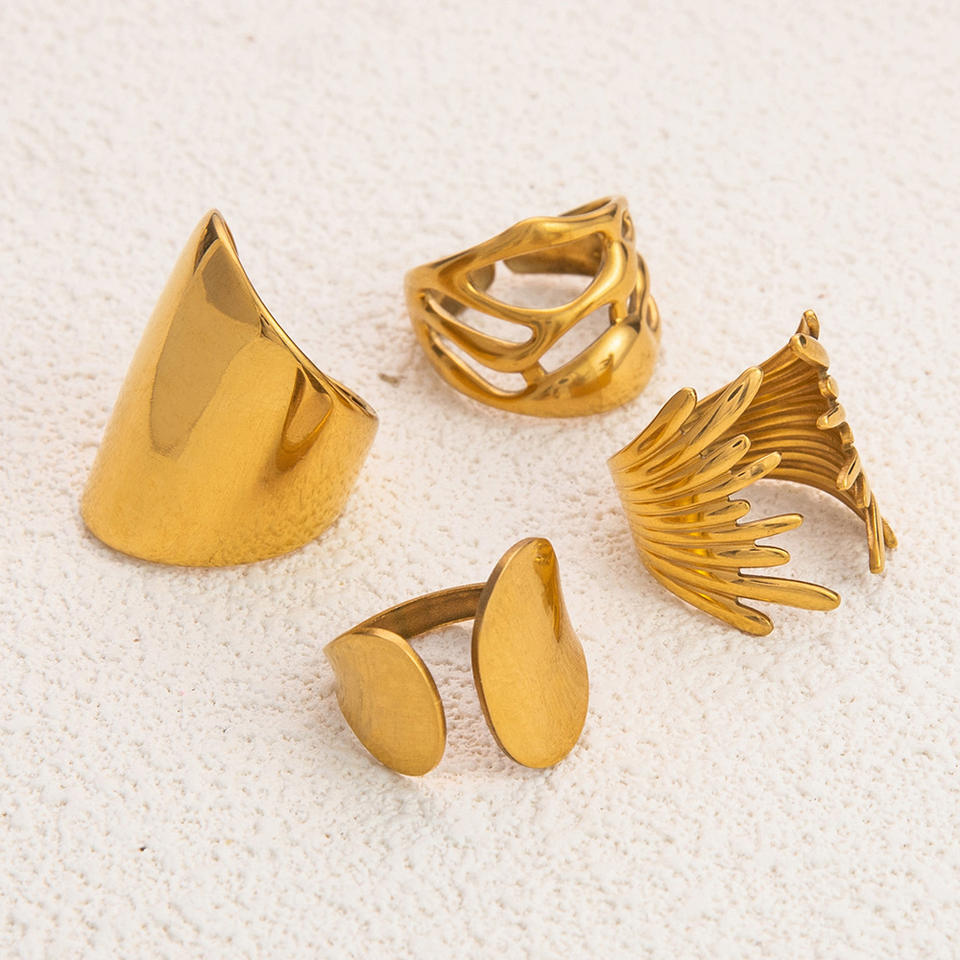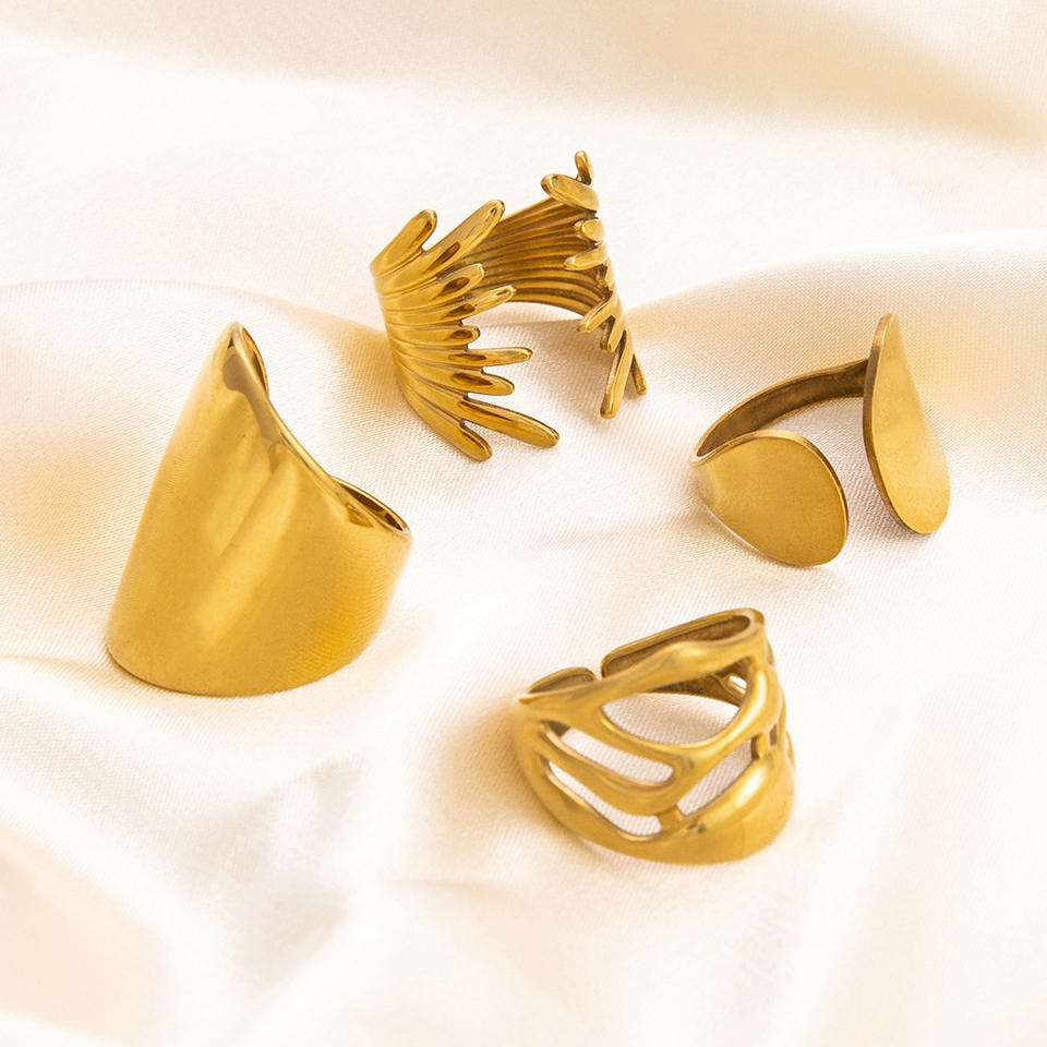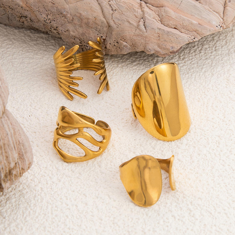 แหวนสแตนเลสทรงเรขาคณิต ชุบทอง 18K รูปทรงตัวยู ดีไซน์ไม่สมมาตร สำหรับผู้หญิง เครื่องประดับสำหรับงานปาร์ตี้