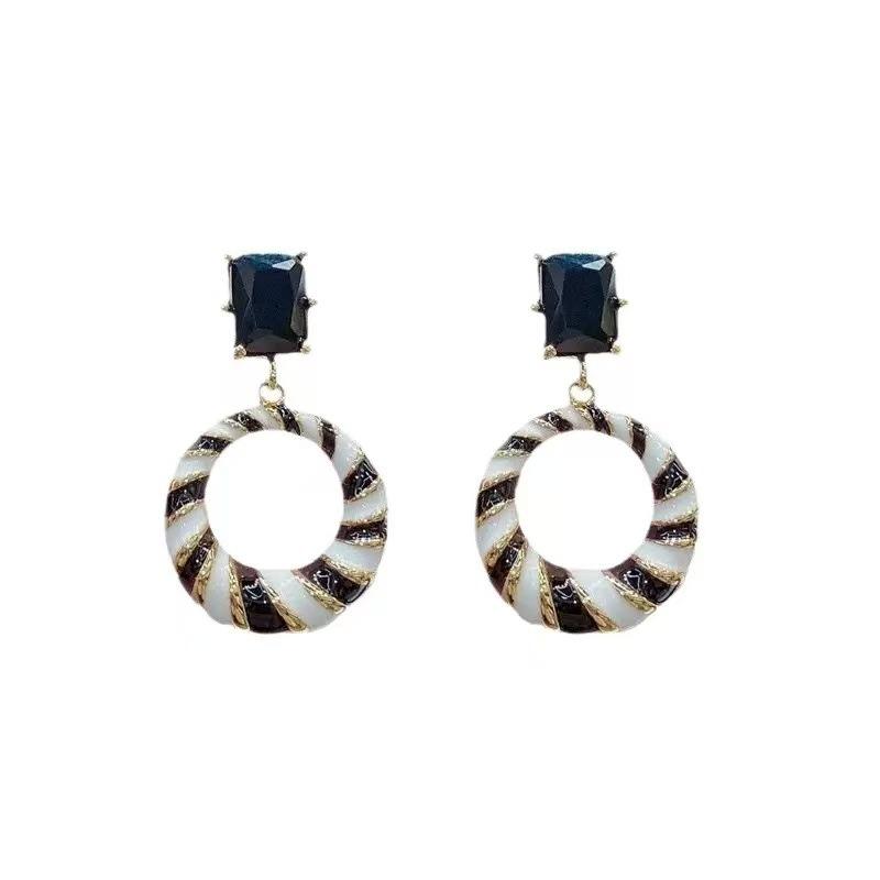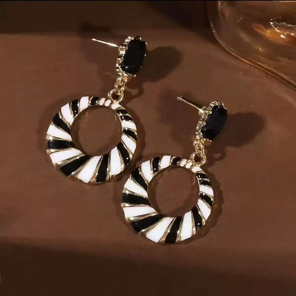 ต่างหูห่วงลายทางเรขาคณิตสไตล์วินเทจ ประดับขอบด้วยทังสเตน ชุบทอง 18K สำหรับผู้หญิงใส่ได้ทุกวัน