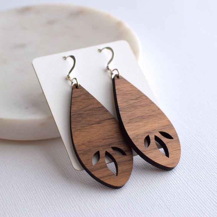 ต่างหูแบบห้อยทำจากไม้รูปทรงเรขาคณิตต่างหูทำจากไม้ที่ทันสมัย