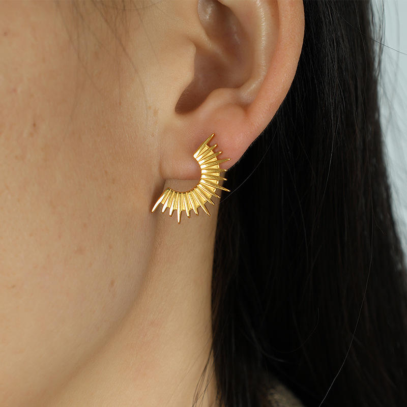 ต่างหูทรงเรขาคณิตซันเบิร์สต์ 18K ชุบทองไทเทเนียมเหล็กเครื่องประดับแฟชั่นปาร์ตี้ EH72
