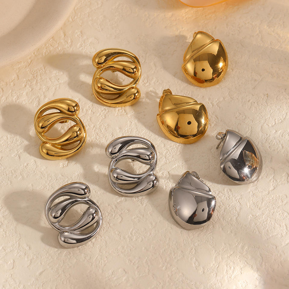 ต่างหูทรงหยดน้ำรูปทรงเรขาคณิต ทำจากไทเทเนียมสตีล ชุบทอง 18k วัสดุสแตนเลสสตีล เครื่องประดับแฟชั่นสำหรับผู้หญิง