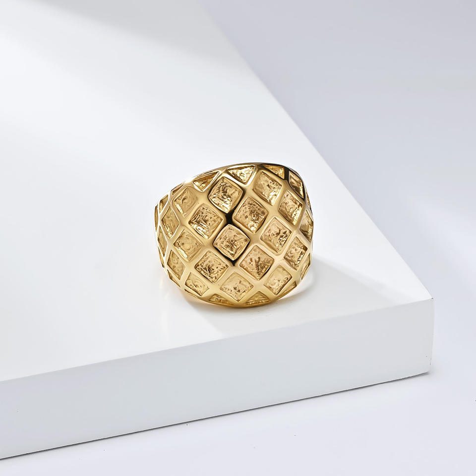 แหวนเหล็กไทเทเนียมทรงเรขาคณิต ชุบทอง ลายรังผึ้ง เครื่องประดับสำหรับสวมใส่ทุกวันสำหรับทั้งชายและหญิง
