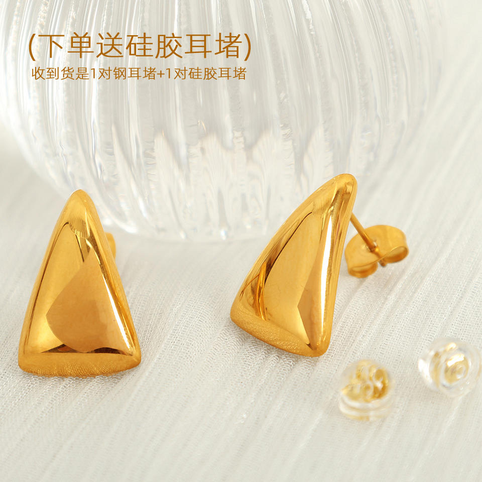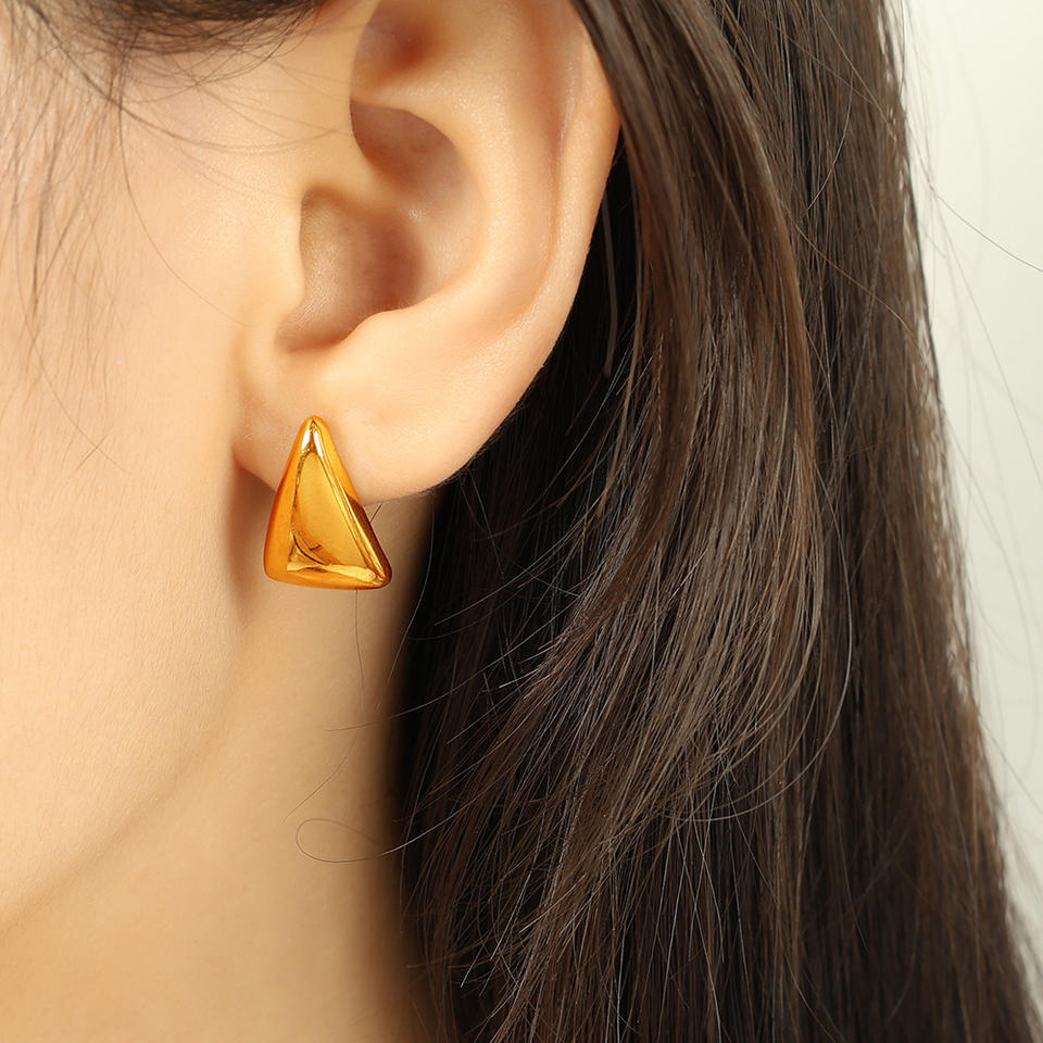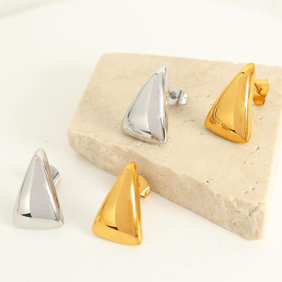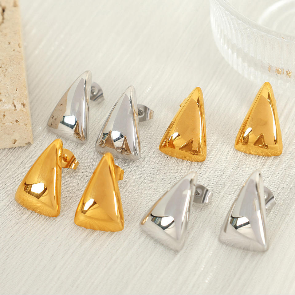 ต่างหูทรงสามเหลี่ยมเรขาคณิต ไทเทเนียมสตีล สีทอง สีเงิน เครื่องประดับแฟชั่นสำหรับทุกวัน