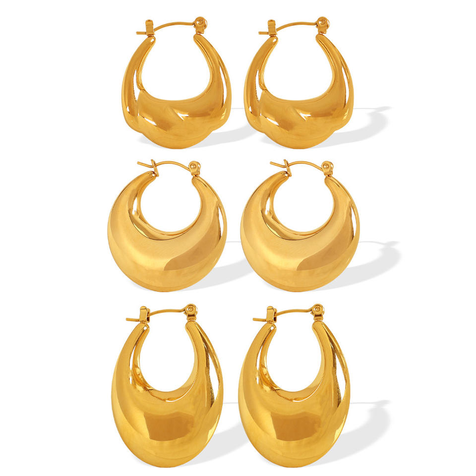 ต่างหูห่วงรูปตัวยูทรงเรขาคณิตสำหรับผู้หญิง สีทอง เครื่องประดับแฟชั่น ดีไซน์มินิมอล ต่างหูแบบติดหู