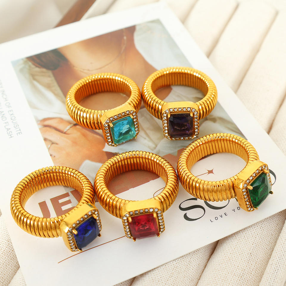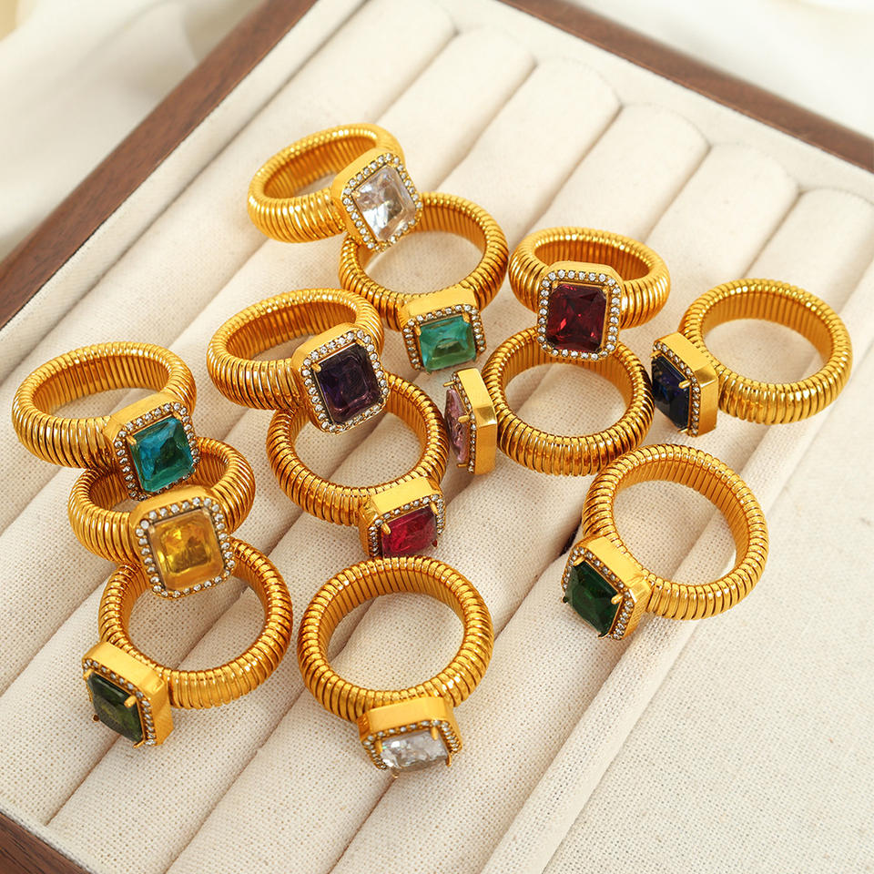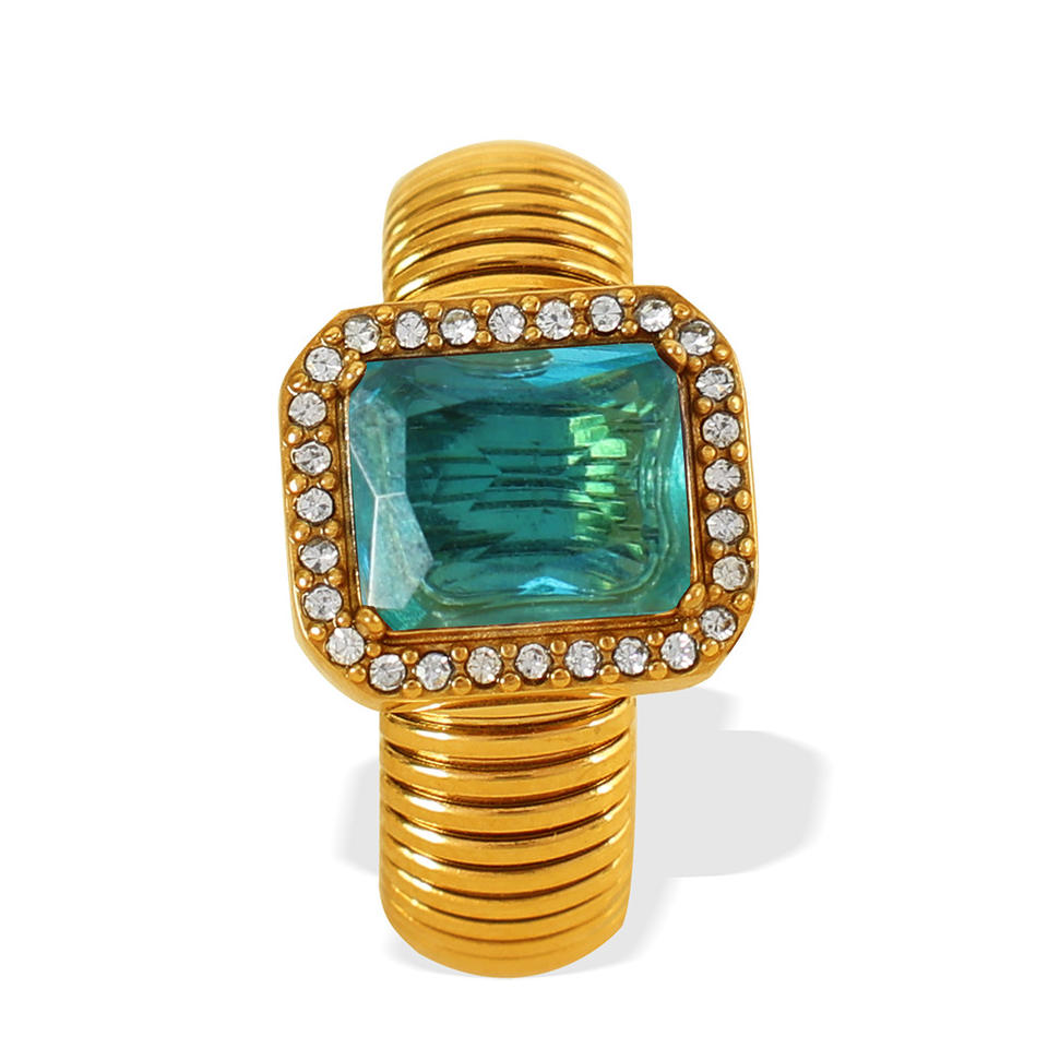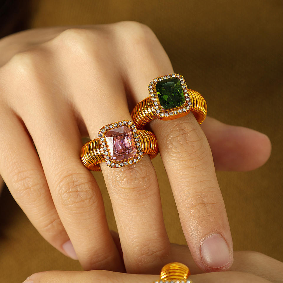 แหวนเพชรทรงเรขาคณิต ชุบทอง 18K ไทเทเนียมสตีล ประดับเพชรแบบ Pave Setting เครื่องประดับสำหรับงานปาร์ตี้ ใช้ได้ทั้งชายและหญิง