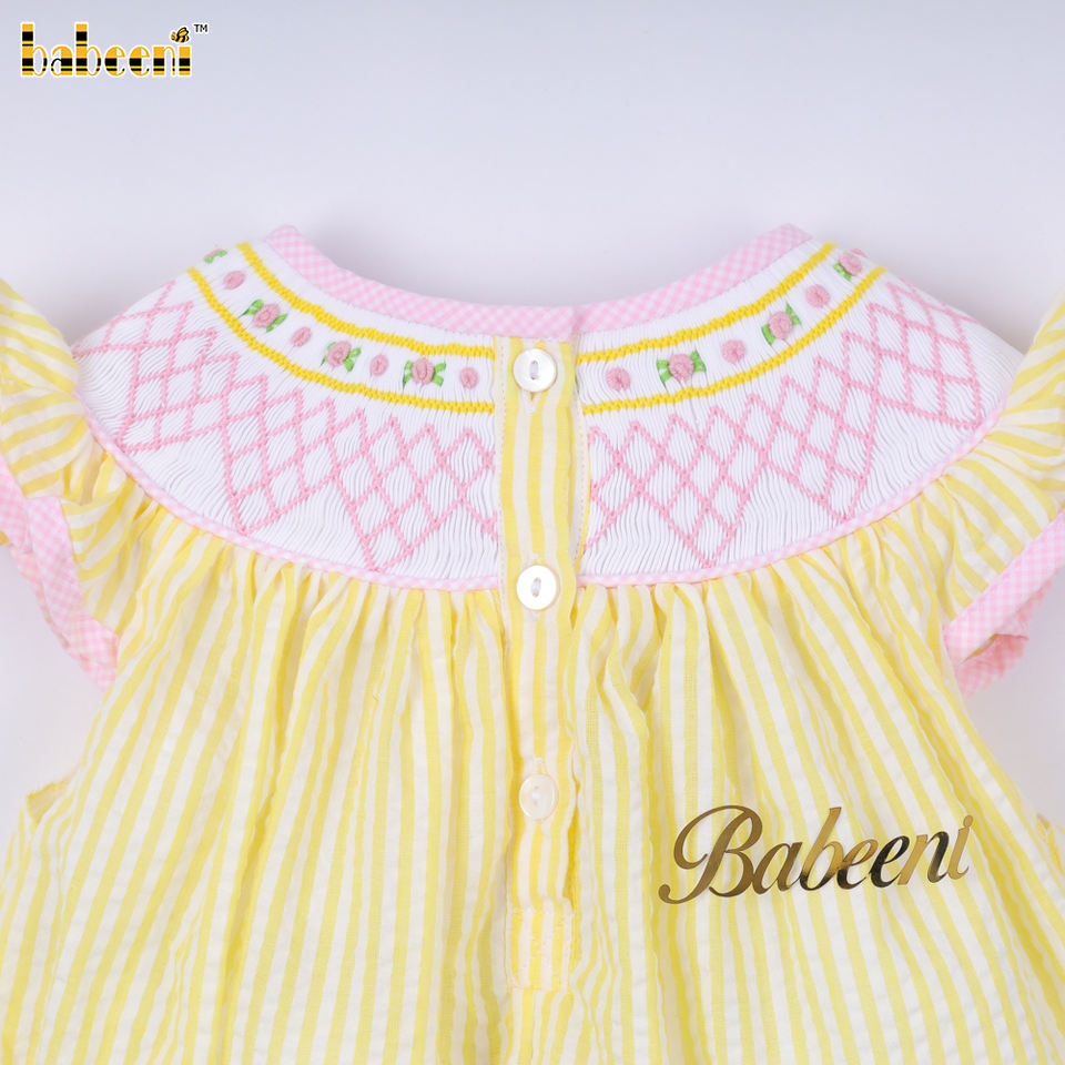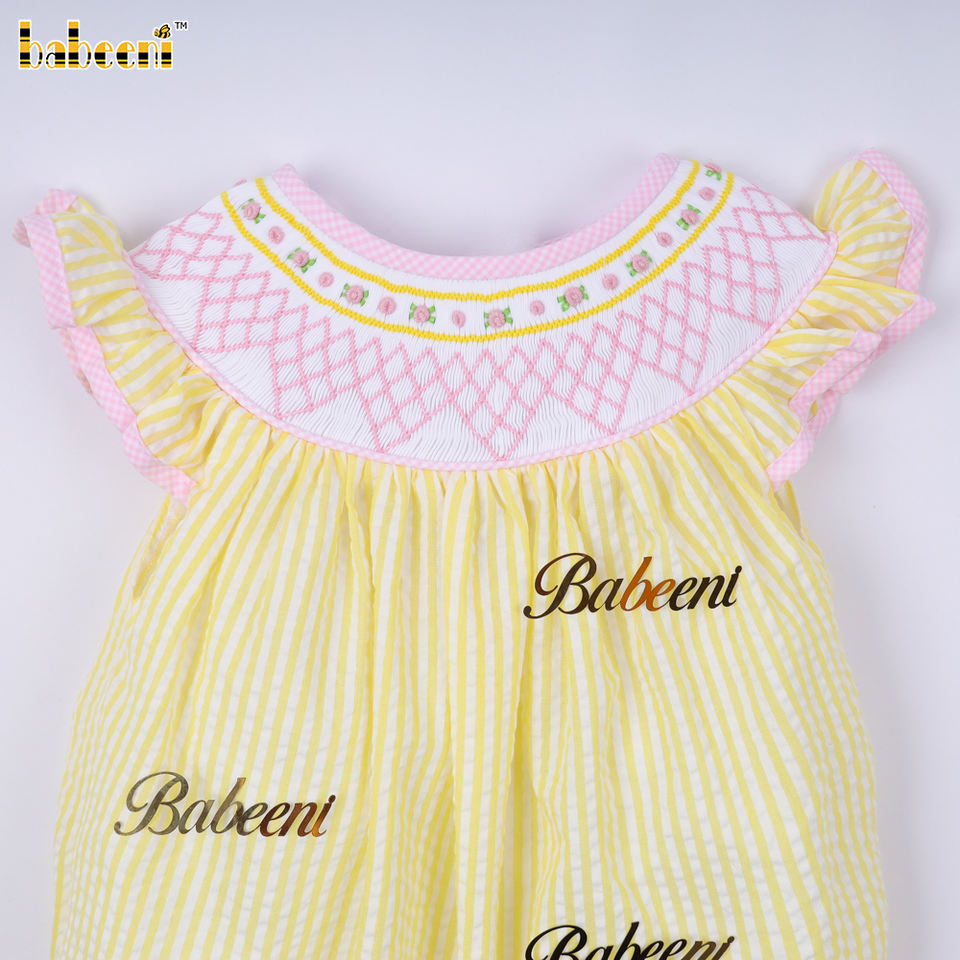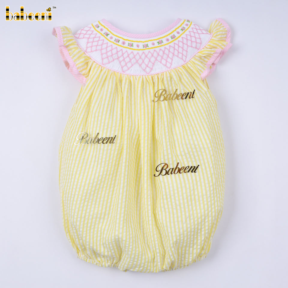 ชุดรอมเปอร์แบบพองสำหรับเด็กผู้หญิงเสื้อคลุมหลวมๆลายเรขาคณิตและดอกไม้100% ผ้าคอตตอนพร้อม Ship-BB1657