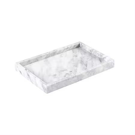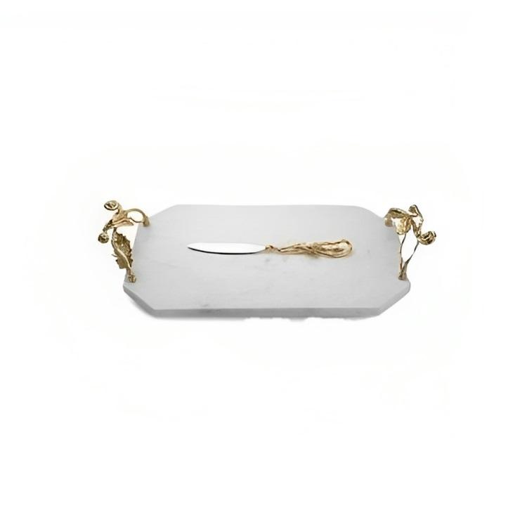 ถาดเสิร์ฟหินอ่อนที่มีด้ามจับโลหะสีทองรูปทรงเรขาคณิตสำหรับการเสิร์ฟอาหารอย่างยั่งยืน