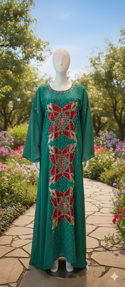 ชุดเดรสอาบายา มุสลิม ประดับลูกปัด แบบคาฟตัน