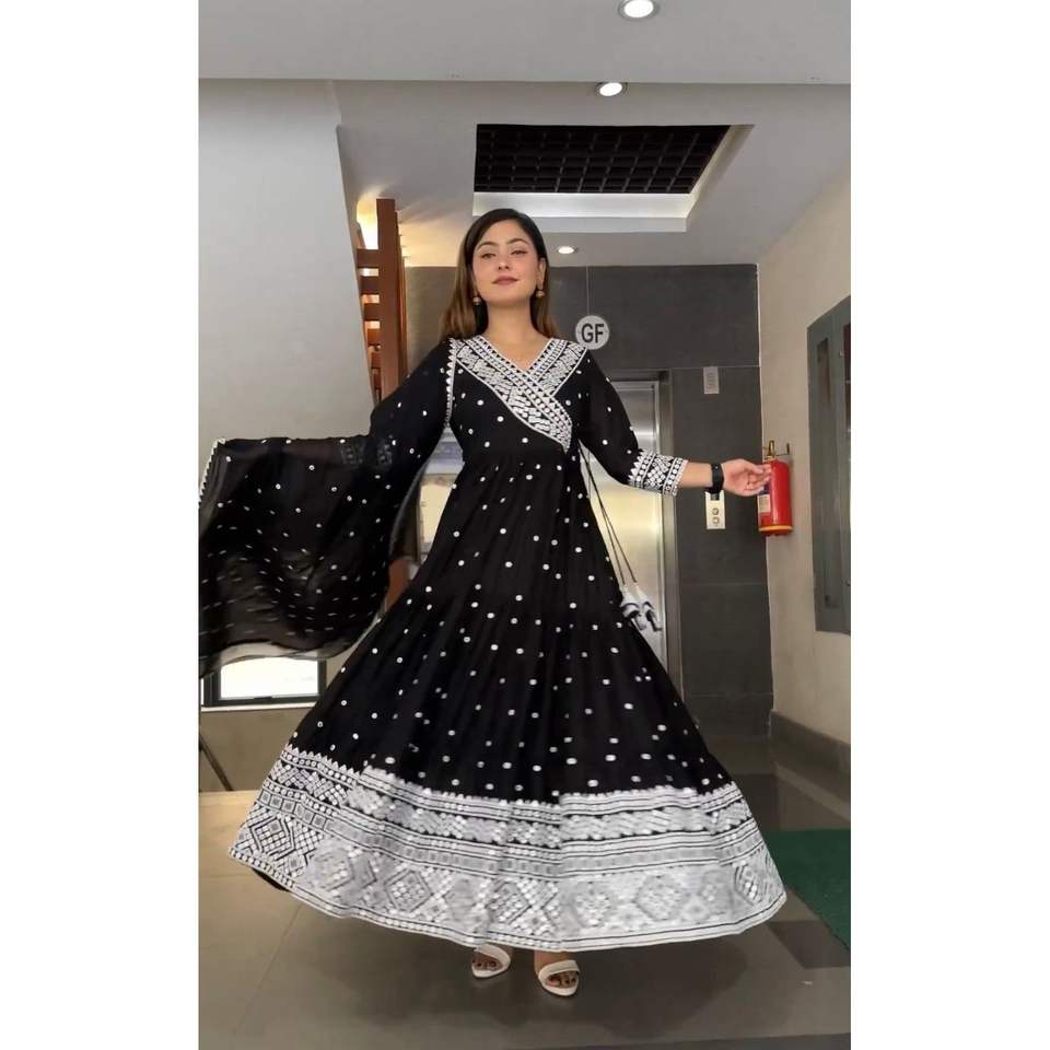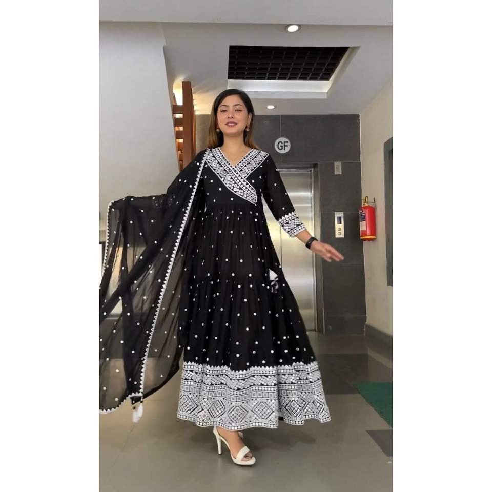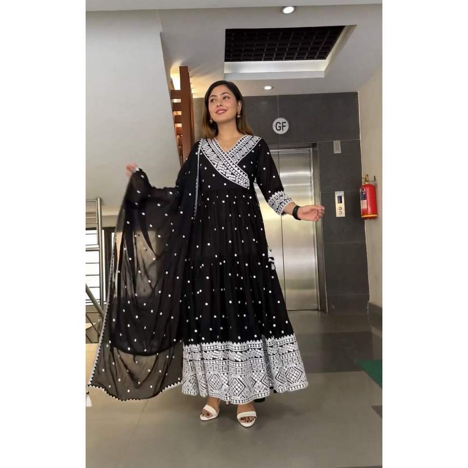 Georgette Embroidery Sequence Work Gown Bottom with Dupatta Black Cocktail Dresses for Parties