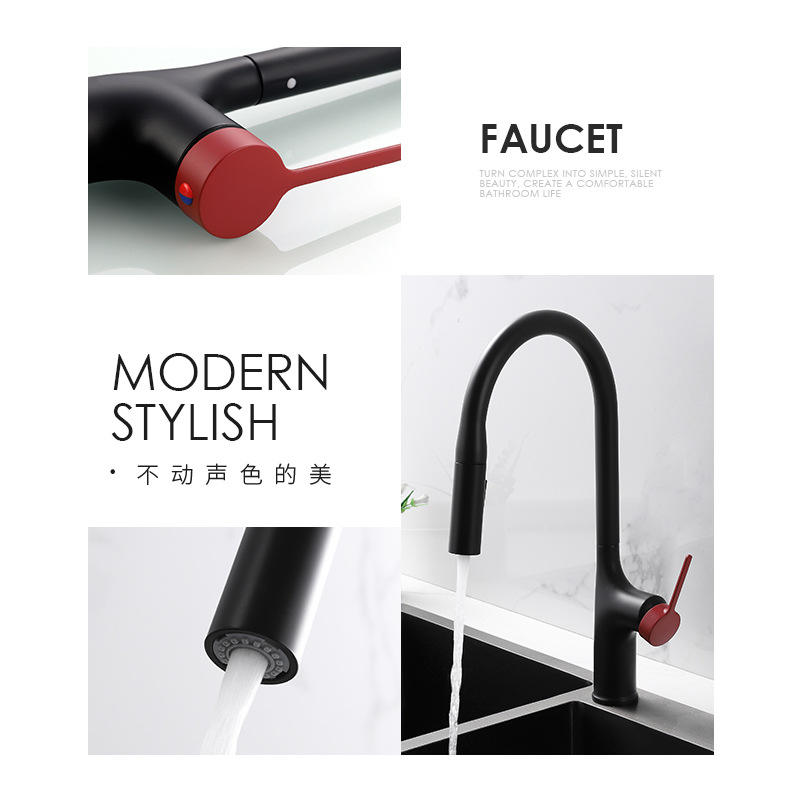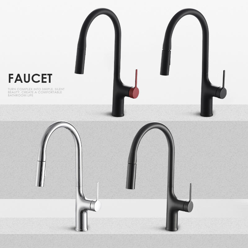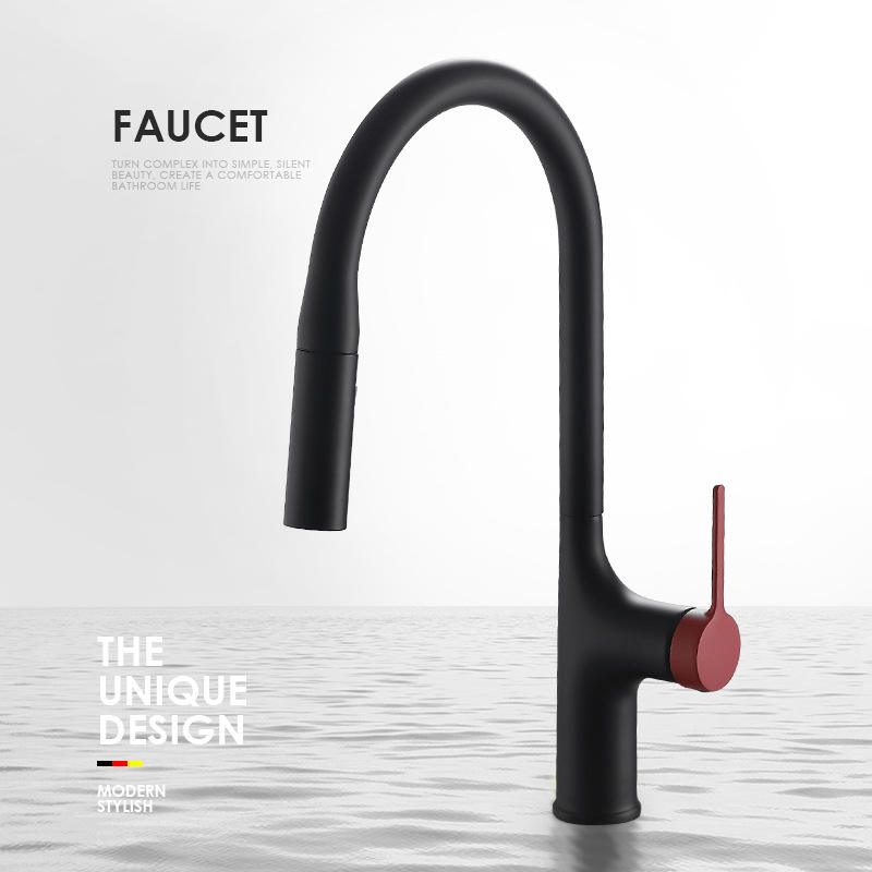 ก๊อกน้ำห้องครัวทองแดงเยอรมันแบบดึงออกได้ พร้อมก้านควบคุมเดี่ยว ติดตั้งบนเคาน์เตอร์ วาล์วเซรามิกทันสมัย อัตราการไหล 2.0-2.9 แกลลอน/นาที