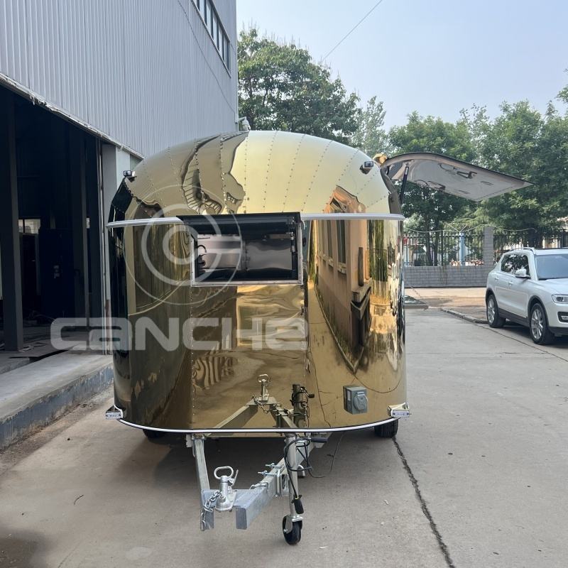 รถขายอาหารเคลื่อนที่แบบรถพ่วง/รถขายของข้างทาง ได้รับการรับรองมาตรฐาน CE COC ของเยอรมัน ใช้ได้กับไฟ 110V/220V/380V