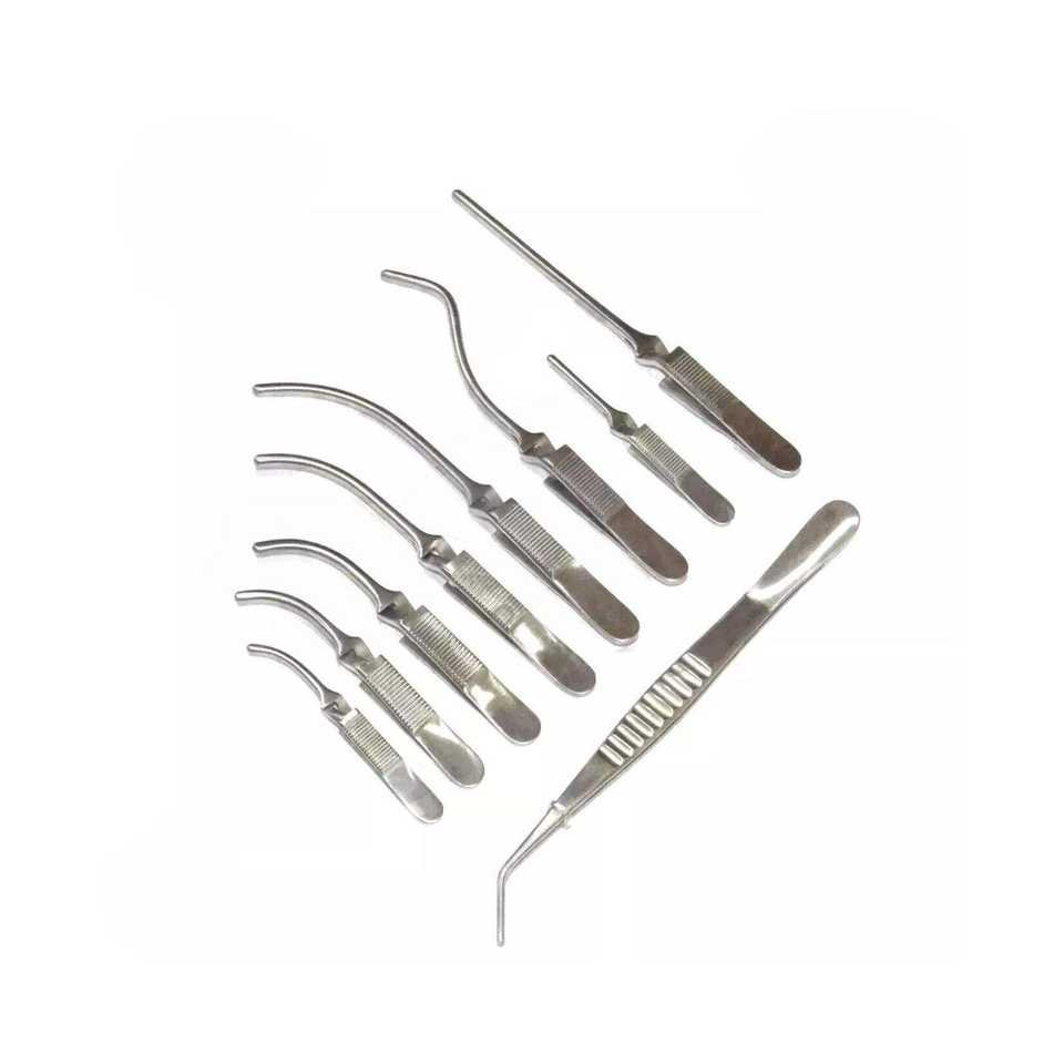ชุดคีมจับเนื้อเยื่อแบบโค้ง Atraumatic ยี่ห้อ German Debakey Bulldog จำนวน 9 ชิ้น ทำจากสแตนเลสสำหรับการผ่าตัดขนาดเล็ก ใช้ด้วยมือ รุ่น MOL