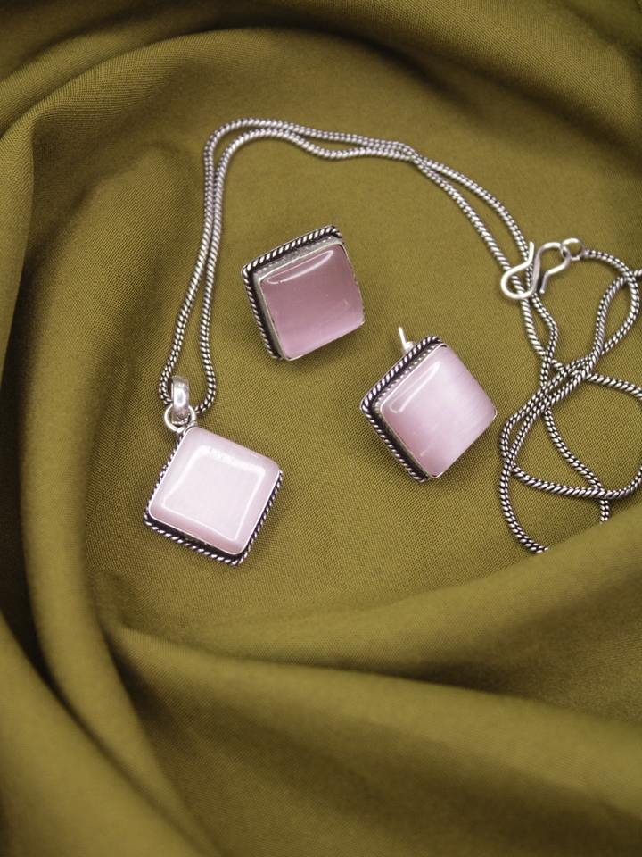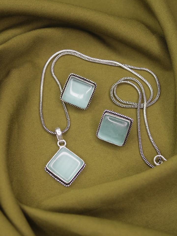 สร้อยคอจี้หิน monalisa จากนักออกแบบชาวเยอรมันพร้อมต่างหูสร้อยคอสีเงินแท้แบบลำลองสำหรับผู้หญิง