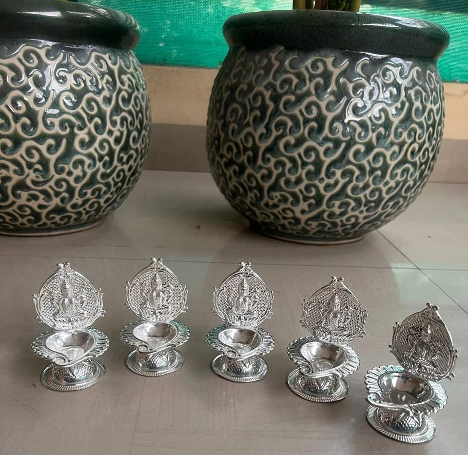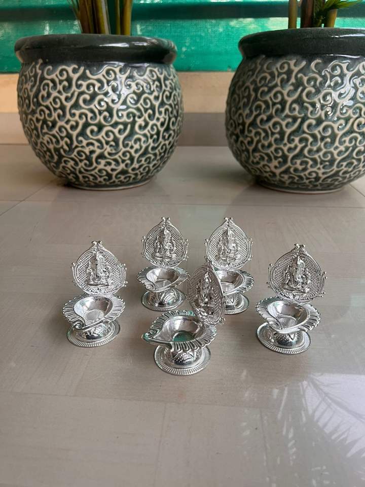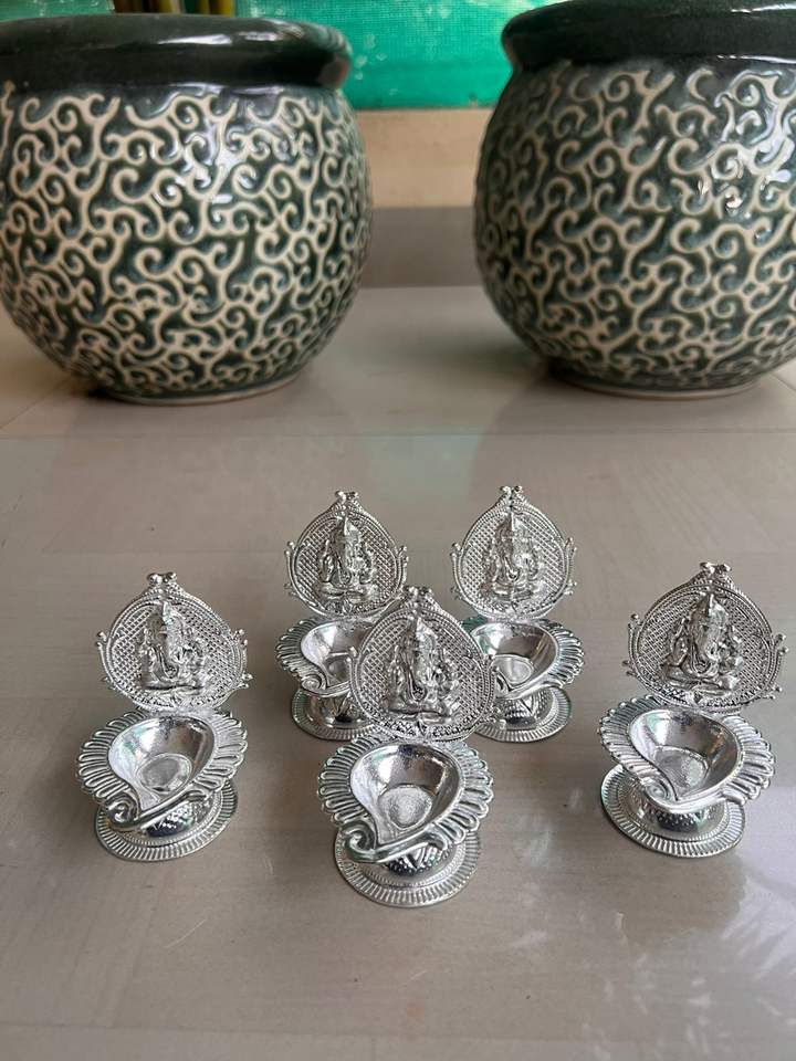 German Designer Silver Ganesh Laxmi Deep Diya Wedding Favor Return Gift for Home Decorative Metal Diya Housewarming Diwali Gift