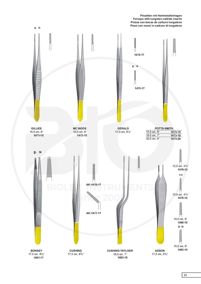 คีมหนีบเนื้อเยื่อสีน้ำตาลแอดสัน4.75 "พร้อมด้วยทังสเตนคาร์ไบด์แทรกสแตนเลสคีมหนีบเครื่องมือวัดด้วยมือ
