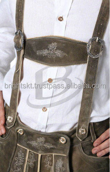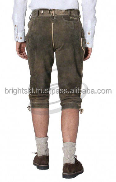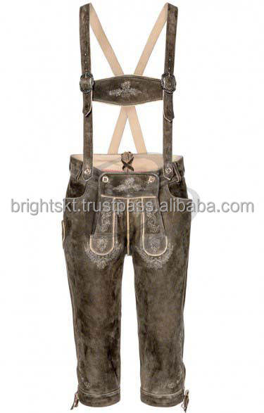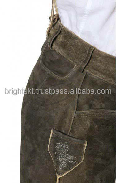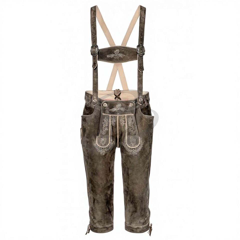 German Oktoberfest Cosplay Costume Men's Bavarian Lederhosen Windproof Cow Skin Suede Pattern Split Type 1.2mm Thickness