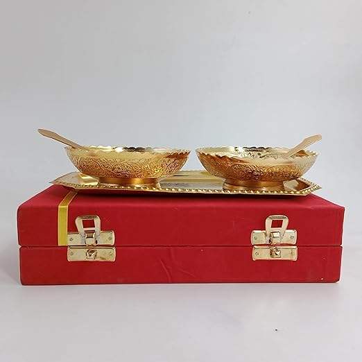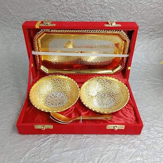 German Silver-Gold Plated Bowl Set Pack of 5pc Wedding, Diwali Gifting Set Royal Look Velvet Box Ideal for Serving Dry Fruit